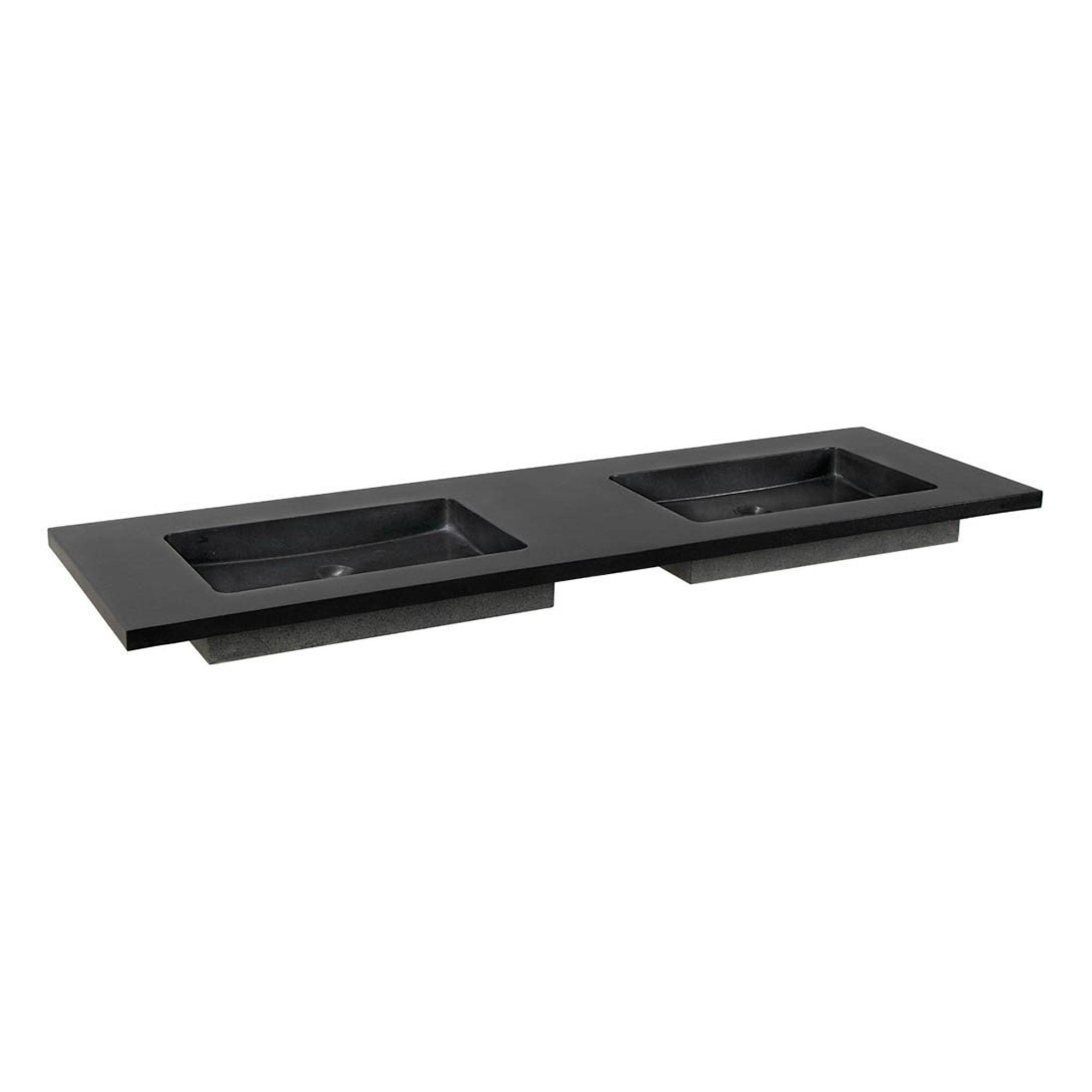 Forzalaqua Nova wastafel 160.5x51.5x9.5cm Rechthoek 0 kraangaten 2 wasbakken Natuursteen Graniet gezoet