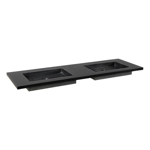 Forzalaqua Nova wastafel 160.5x51.5x9.5cm Rechthoek 0 kraangaten 2 wasbakken Natuursteen Graniet gezoet SW369815