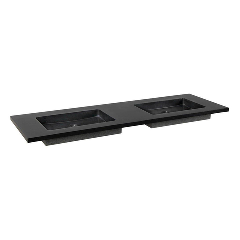Forzalaqua Nova wastafel 160.5x51.5x9.5cm Rechthoek 2 kraangaten 2 wasbakken Natuursteen Graniet gezoet
