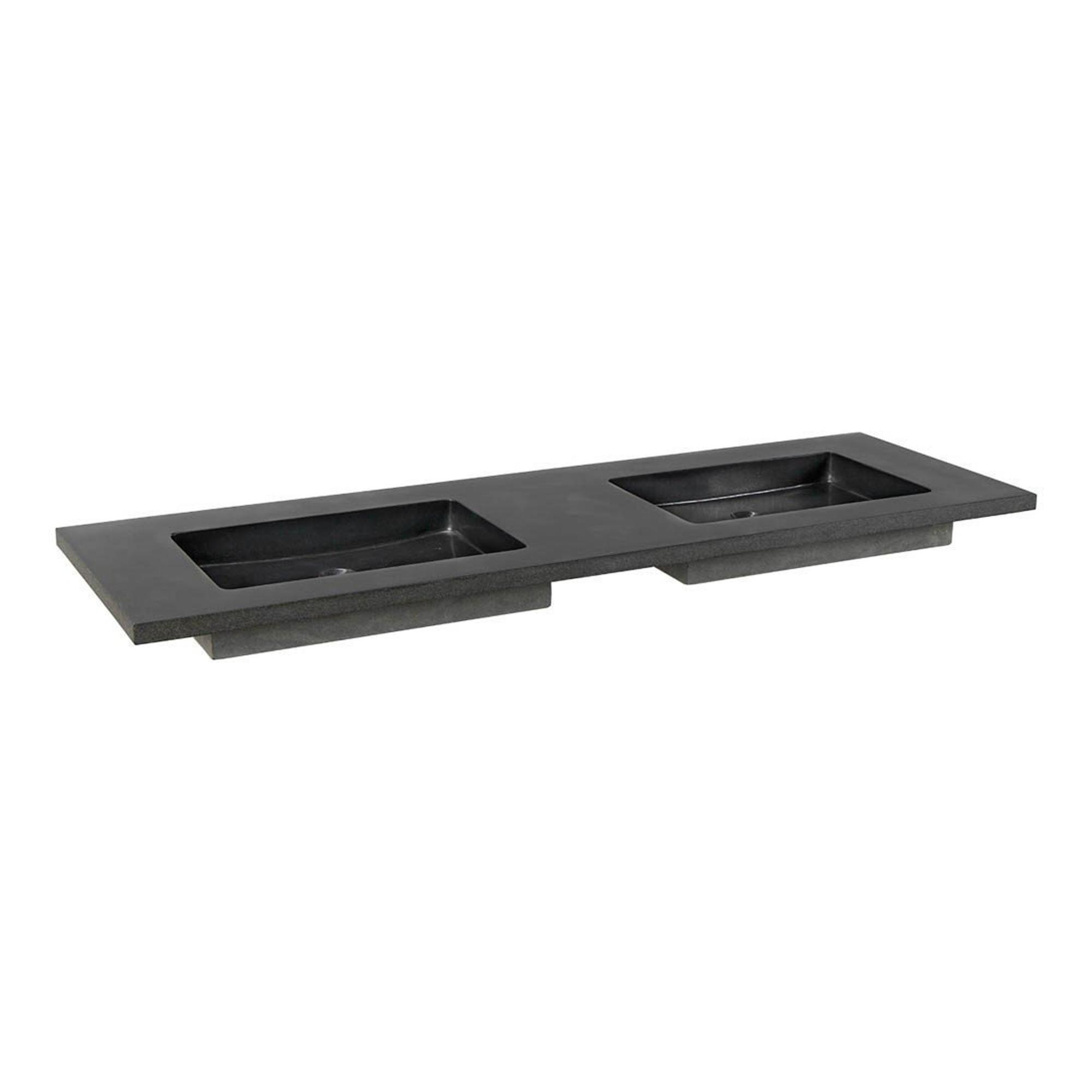 Forzalaqua Nova wastafel 140.5x51.5x9.5cm Rechthoek 0 kraangaten 2 wasbakken Natuursteen Graniet gezoet & gebrand