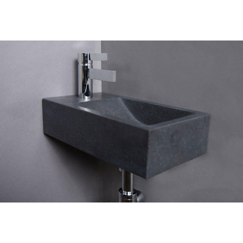 Forzalaqua Venetia fonteinbak 40x22x10cm wasbak Rechts 0 kraangaten Natuursteen Graniet gezoet
