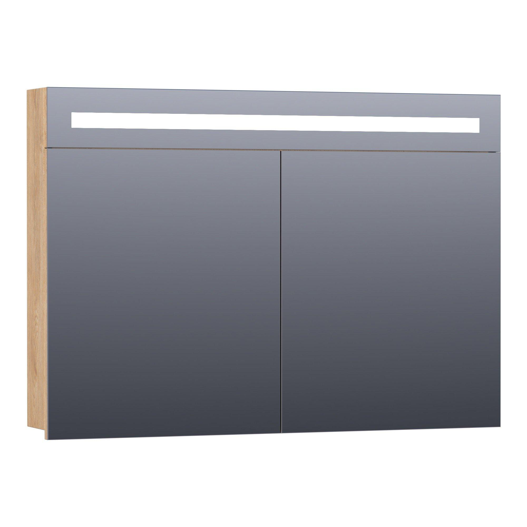 BRAUER Promise spiegelkast - 100x70x15cm -- met directe verlichting - 2 enkelzijdige spiegeldeuren - Forest Tan