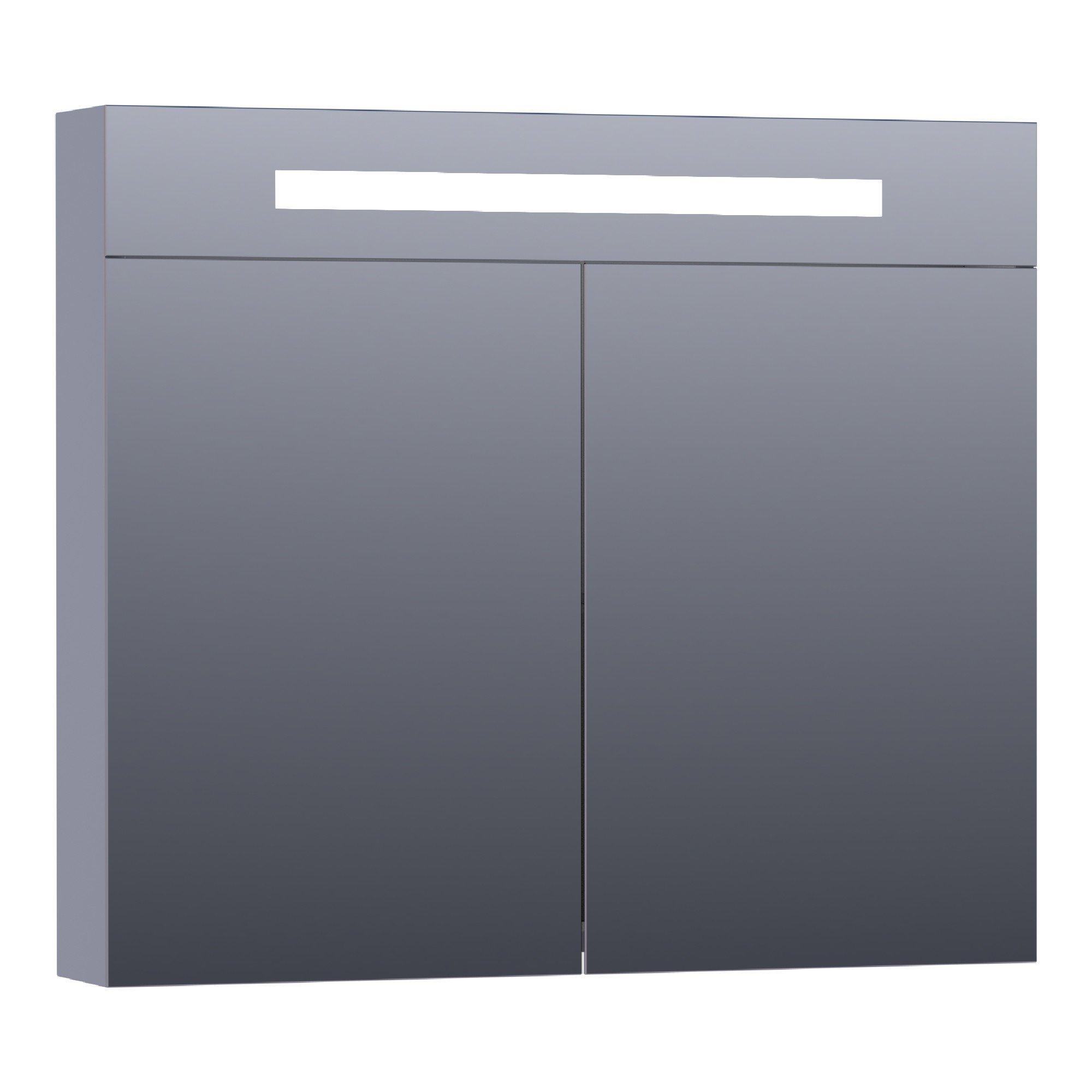 BRAUER Double face spiegelkast 80x70x15cm verlichting geintegreerd rechthoek 2 draaideuren Mat Grijs MDF
