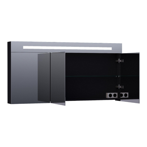 BRAUER Promise Deluxe spiegelkast - 140x70x15cm - met directe verlichting 3 dubbelzijdige spiegeldeuren - mat zwart
