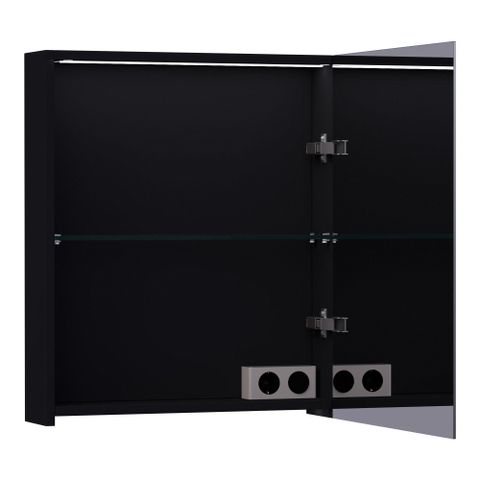 BRAUER Impress Deluxe spiegelkast - 60x70x15cm - interne en externe verlichting - 1 rechtsdraaiende dubbelzijdige spiegeldeur mat zwart