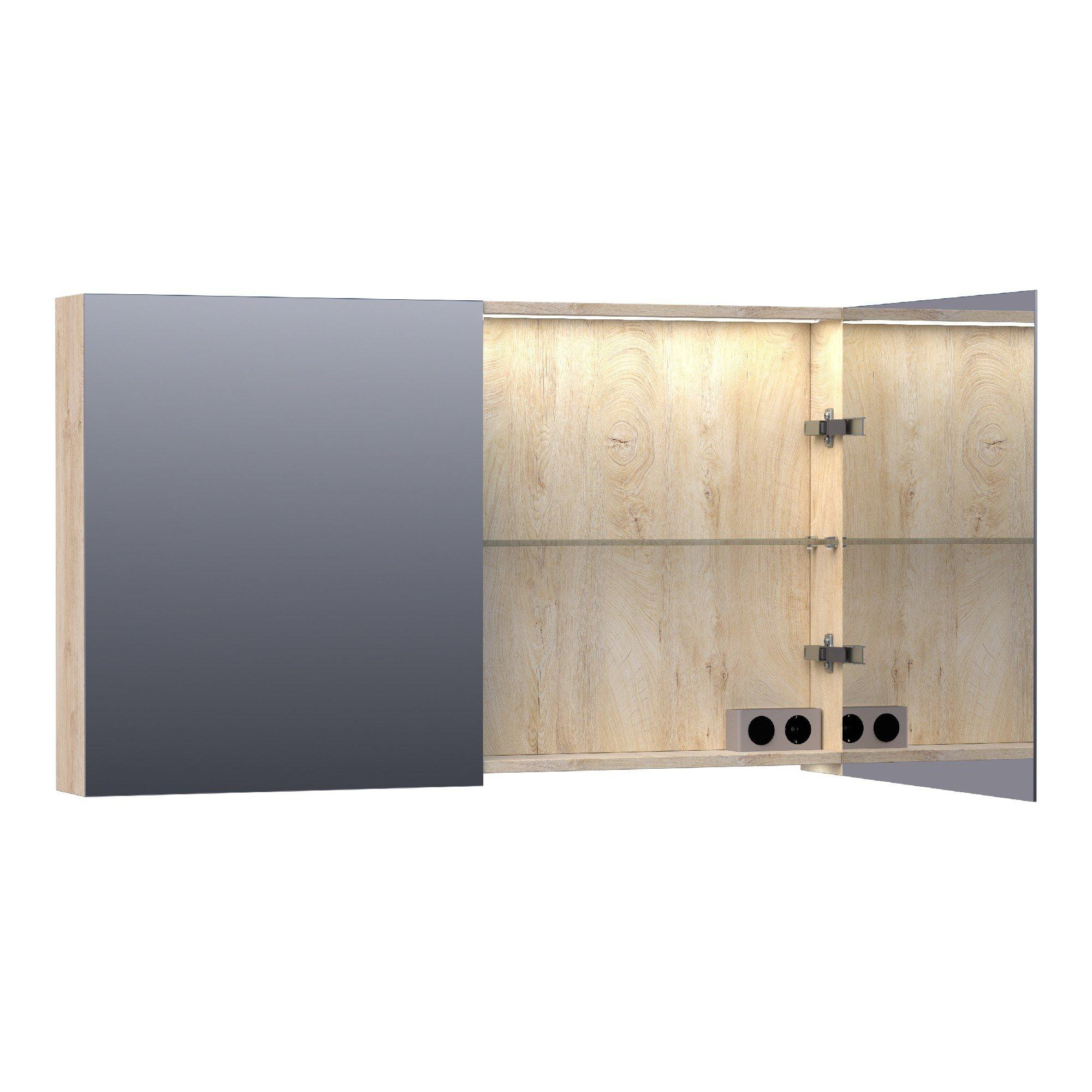BRAUER Impress Deluxe spiegelkast - 120x70x15cm - interne en externe verlichting - 2 dubbelzijdige spiegeldeuren - Forest Wheat