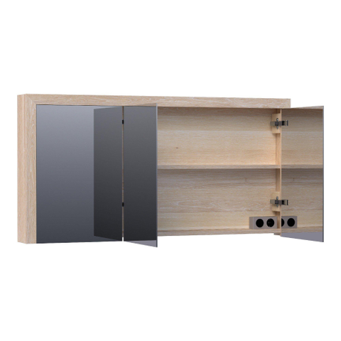 BRAUER Rise spiegelkast - 140x70x15cm - zonder verlichting - met 3 dubbelzijdige spiegeldeuren - lamellen eiken wit