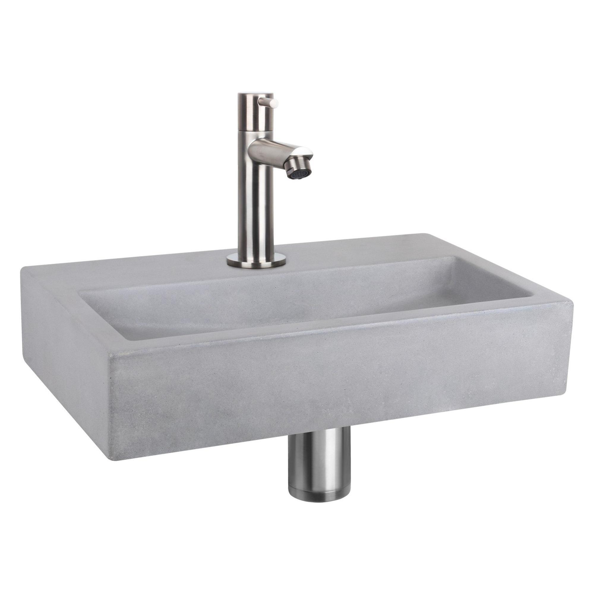 Differnz Flat fonteinset - 38x24x8cm - Rechthoek - 1 kraangat - Recht matte chromen kraan - Beton Grijs