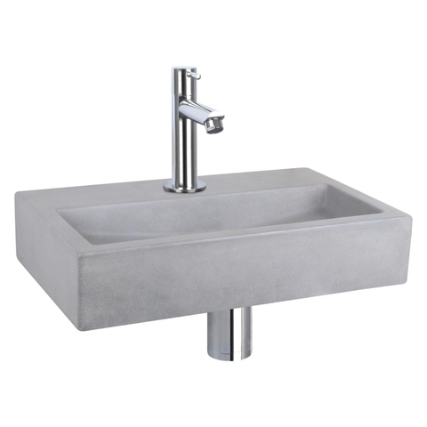 Differnz Flat fonteinset - 38x24x8cm - Rechthoek - 1 kraangat - Recht chromen kraan - Beton Grijs