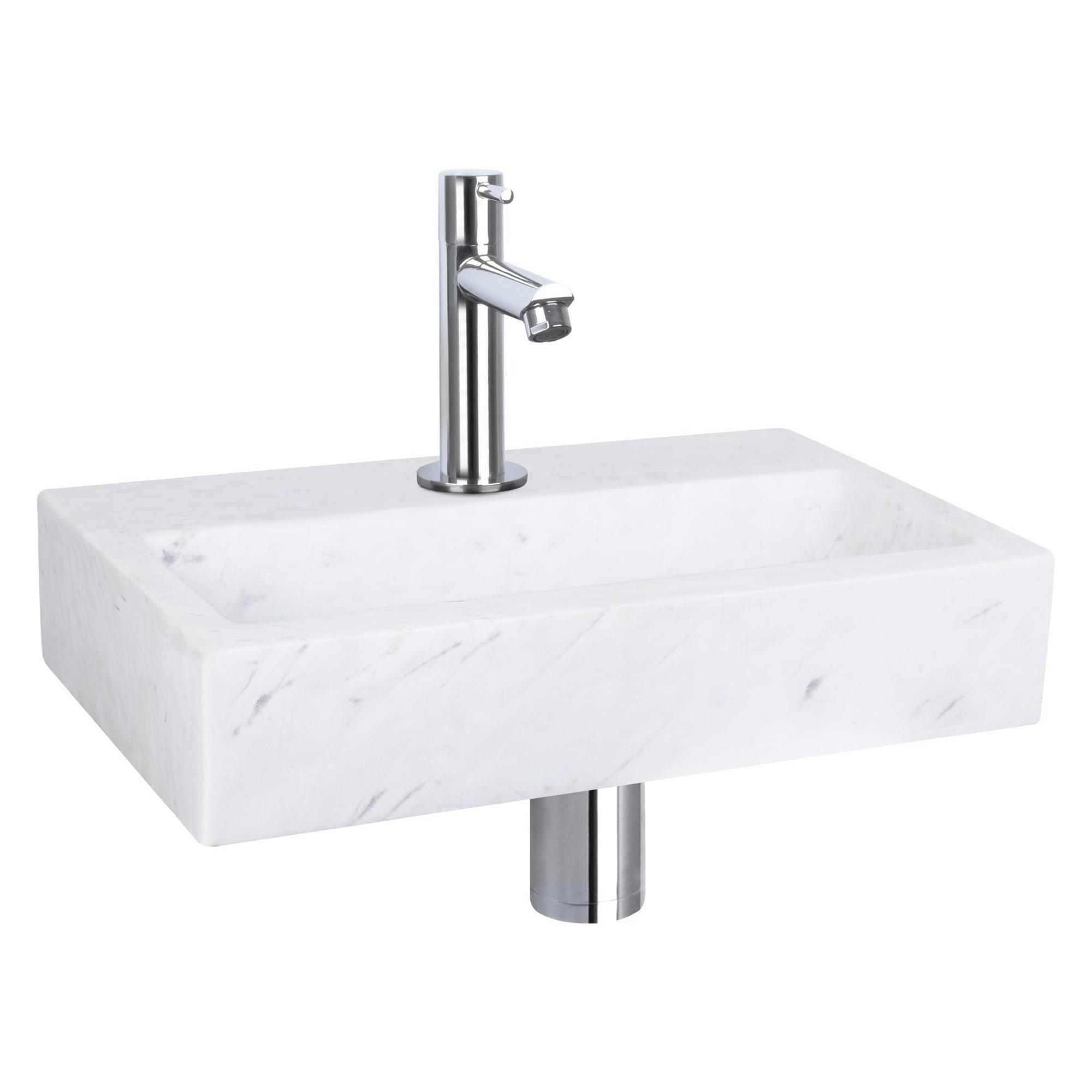 Differnz Flat fonteinset - 38x24x8cm - Rechthoek - 1 kraangat - Recht chromen kraan - Marmer Wit