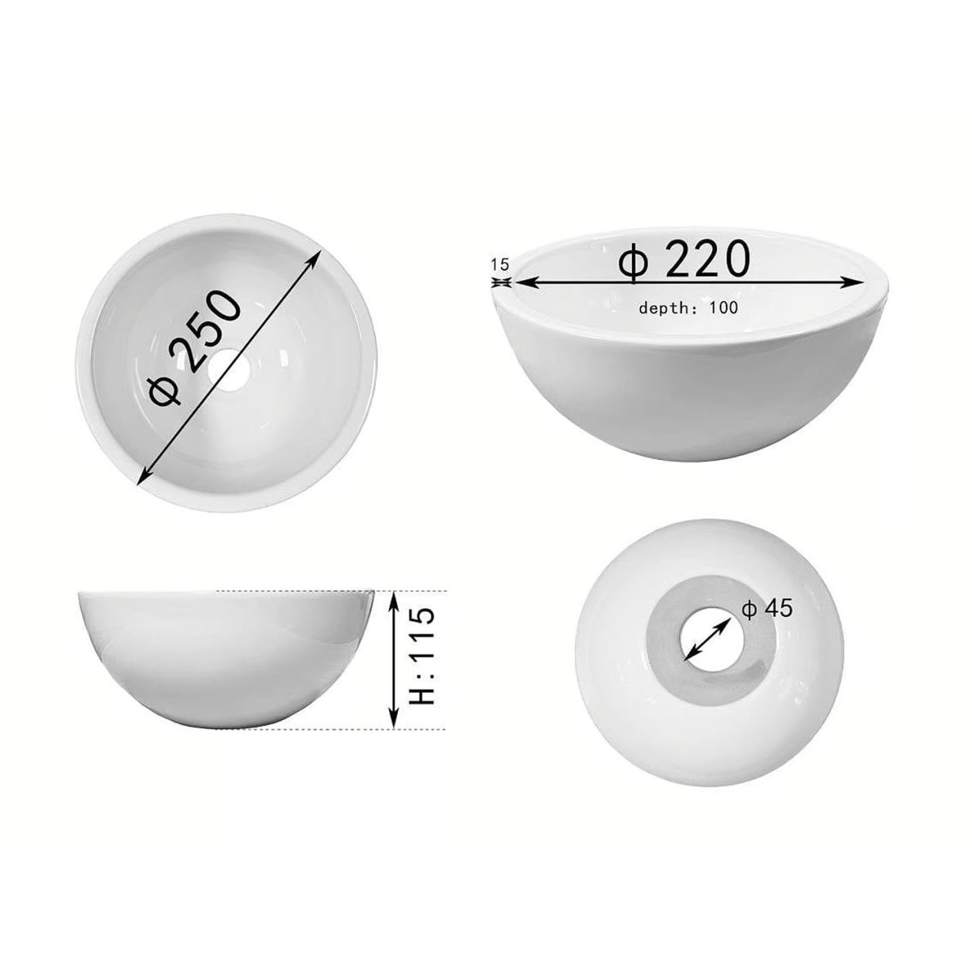De waskom van Differnz kan goed gecombineerd worden op maatwerk meubels of wastafelbladen. Dit model is rond van vorm en heeft een afmeting van 25 cm. De hoogte is 11.5 cm. In de waskom zit geen overloop verwerkt.