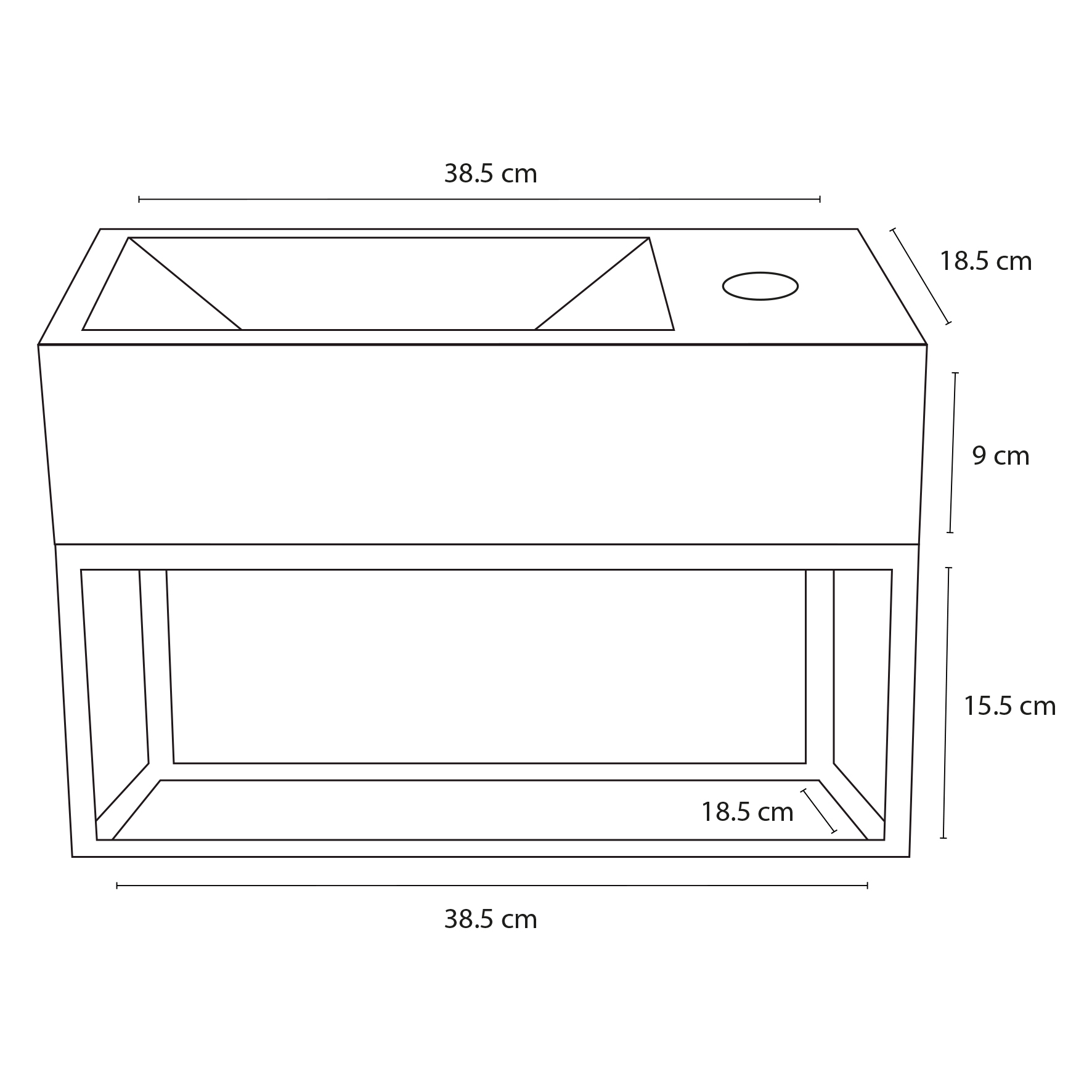 - Afmetingen: 38.5x18.5x25cm