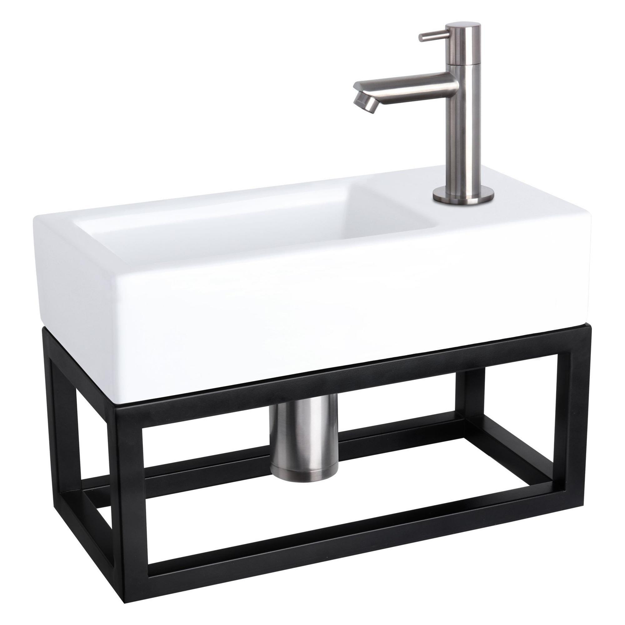 Met zijn rechtlijnige vormen en verfijnde afwerking straalt de Differnz Ravo fonteinset een onmiskenbare elegantie uit. De matte chromen kraan voegt een vleugje luxe toe, terwijl het zwarte frame een subtiel contrast creëert. Het keramiek in witte kleur geeft de fonteinset een klassieke en elegante uitstraling die de badkamer transformeert tot een oase van rust en schoonheid.