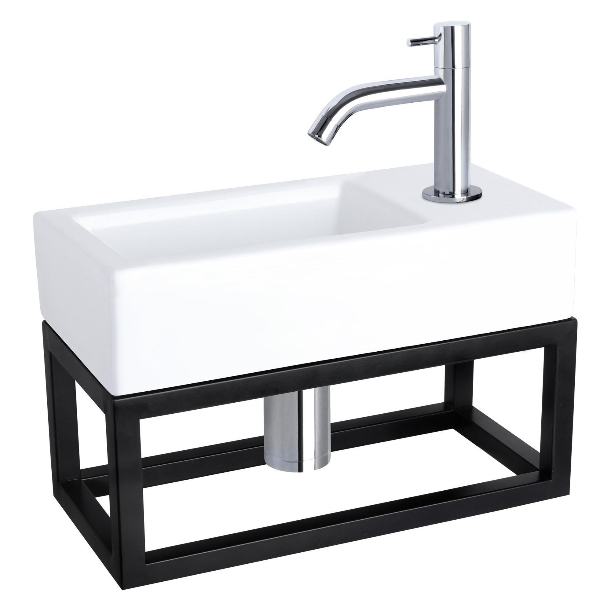 De Differnz Ravo fonteinset straalt stijl en elegantie uit dankzij het strakke rechthoekige ontwerp en de gebogen chromen kraan. Het zwarte frame voegt een vleugje moderniteit toe aan het geheel, waardoor dit fonteinsetje een echte blikvanger is in elke badkamer. De combinatie van wit keramiek met de glanzende chromen details creëert een tijdloze en luxueuze uitstraling die de ruimte direct transformeert.