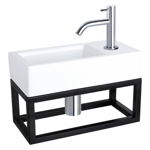 Differnz Ravo fonteinset - 38.5x18.5x25cm - Rechthoek - 1 kraangat - Gebogen chromen kraan - met zwart frame - Keramiek Wit