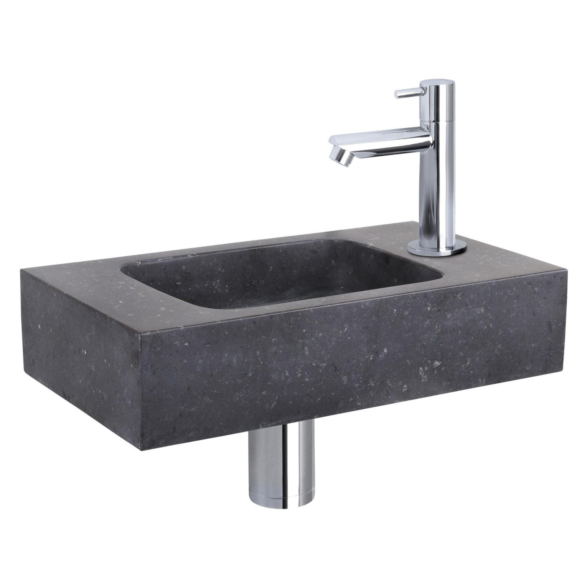Differnz Force fonteinset - 40x22x9cm - Rechthoek - 1 kraangat - Recht chromen kraan - Natuursteen Zwart