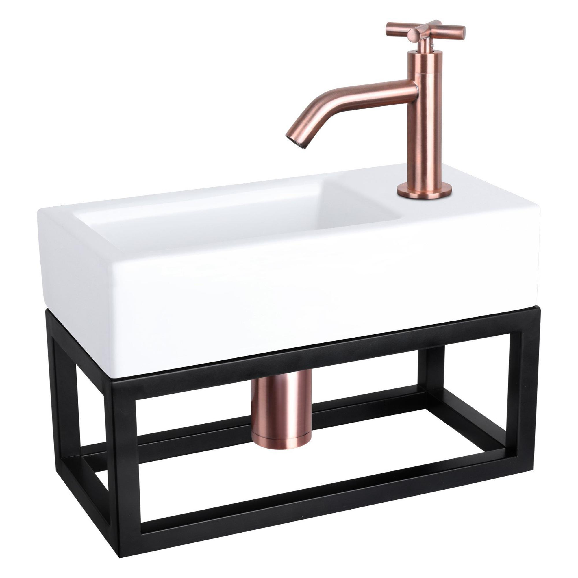 De Differnz Ravo fonteinset is een prachtig stukje vakmanschap dat je badkamer een vleugje elegantie en stijl geeft. Met zijn strakke rechthoekige vorm, gebogen koperen kraan en zwart frame straalt dit fonteinsetje klasse uit. De kruisgreep en het keramiek in witte kleur voegen een tijdloze charme toe aan je badkamerinterieur. Dit fonteinset is niet alleen functioneel, maar ook een ware eyecatcher die je badkamer transformeert tot een oase van luxe en comfort.
