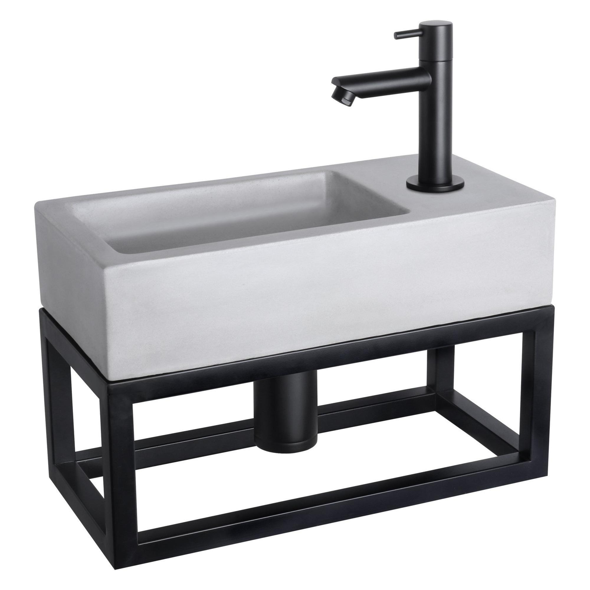 Differnz Ravo fonteinset - 38.5x18.5x25cm - Rechthoek - 1 kraangat - Recht matte zwarte kraan - met zwart frame - beton lichtgrijs
