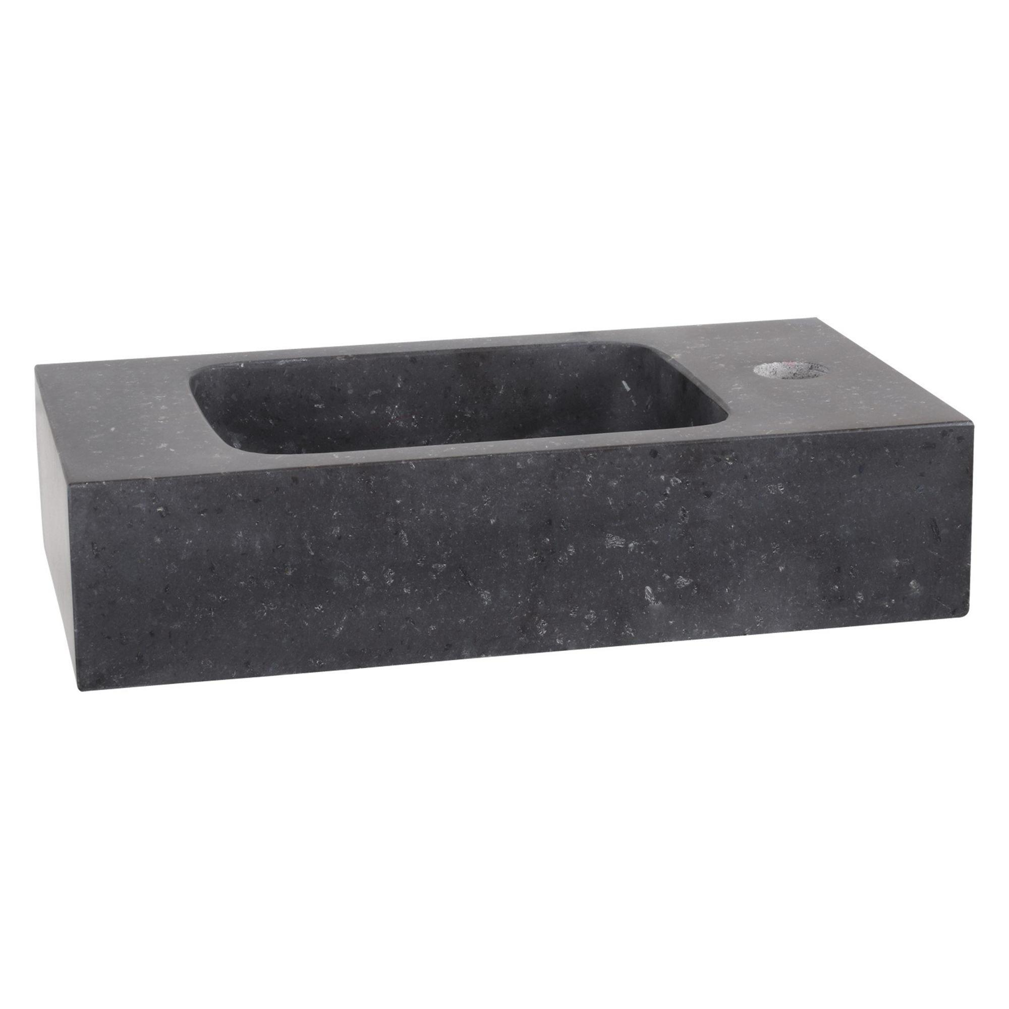Differnz Bombai fonteinset - 40x22x9cm - Rechthoek - 1 kraangat - Gebogen matte zwarte kraan - met zwart frame - Natuursteen Zwart