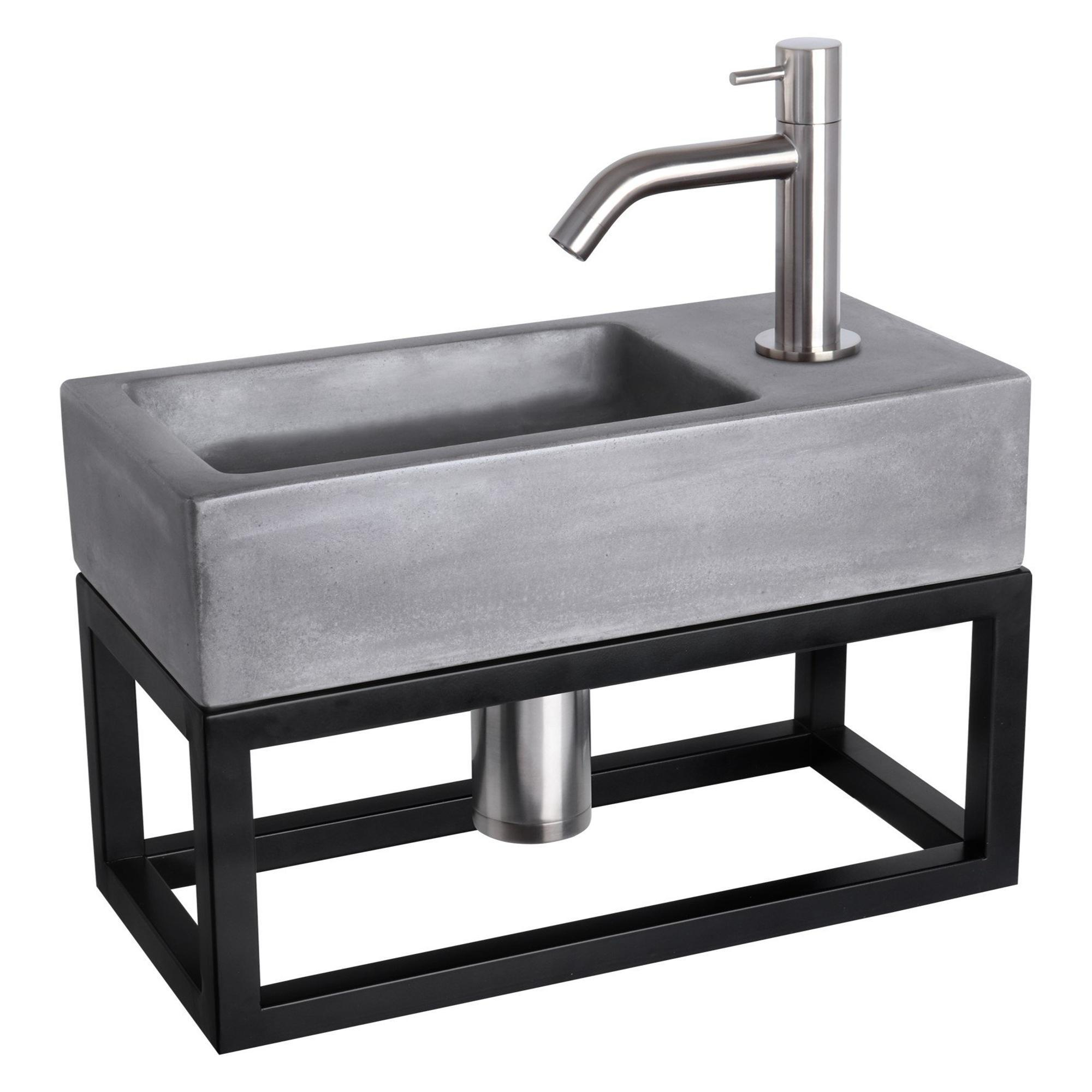 Differnz Ravo fonteinset - 38.5x18.5x25cm - Rechthoek - 1 kraangat - Gebogen matte chromen kraan - met zwart frame - beton donkergrijs