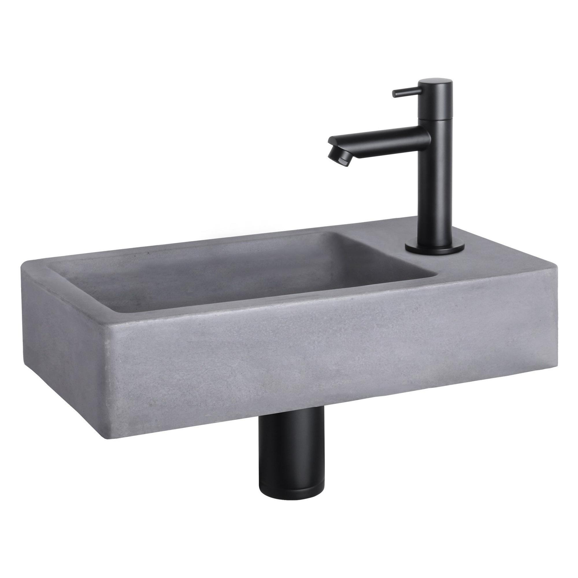 Differnz Force fonteinset - 40x22x8cm - Rechthoek - 1 kraangat - Recht matte zwarte kraan - Beton Grijs
