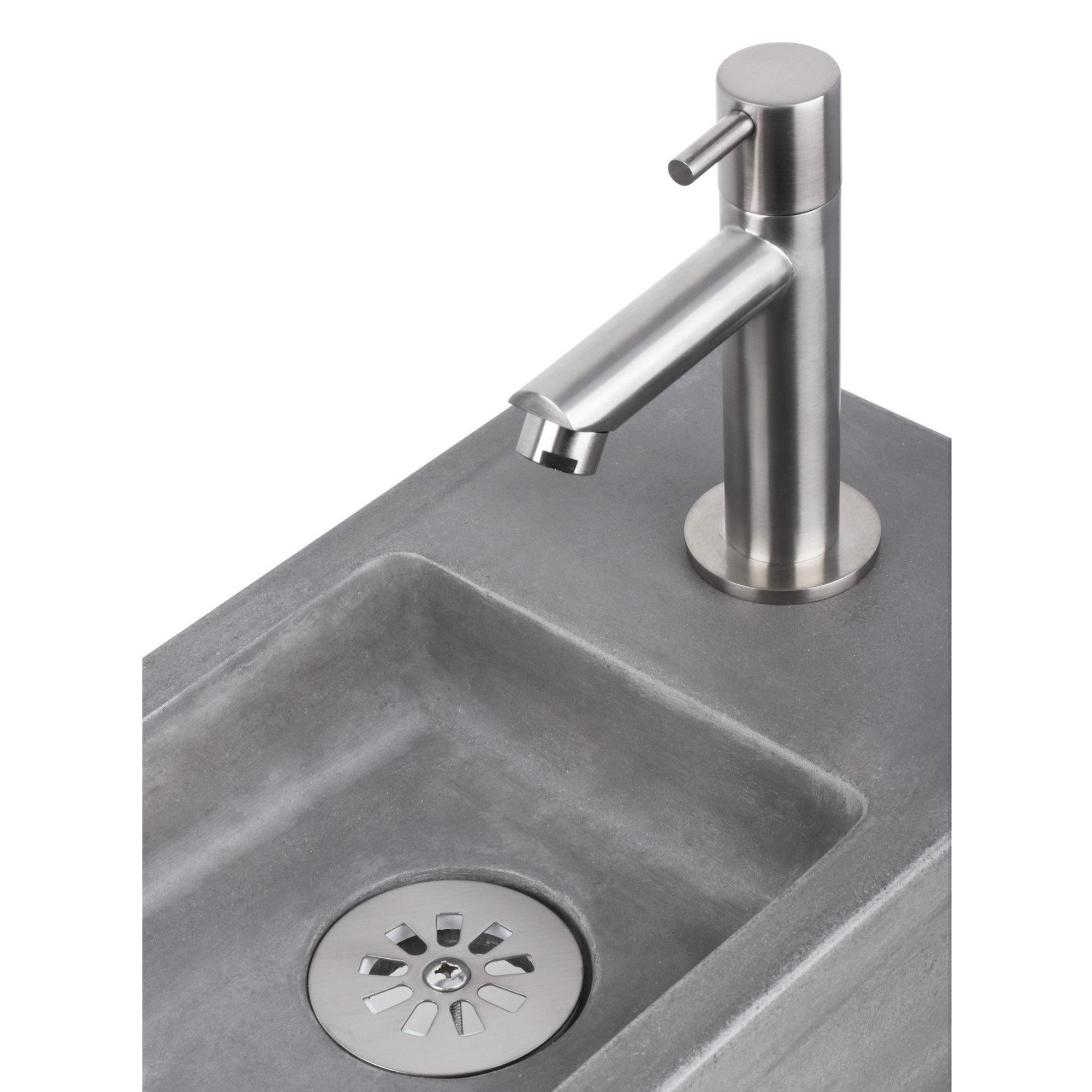 De Differnz Ravo fonteinset is een prachtig stuk voor in jouw badkamer. Met zijn strakke rechthoekige vorm, matte chromen kraan en zwart frame straalt dit fonteinset elegantie en moderniteit uit. De beton donkergrijze afwerking voegt een vleugje stijl toe aan elke badkamer. Met zijn afmetingen van 38.5x18.5x25cm past dit fonteinset perfect in kleine ruimtes en voegt het een luxe uitstraling toe aan jouw interieur.