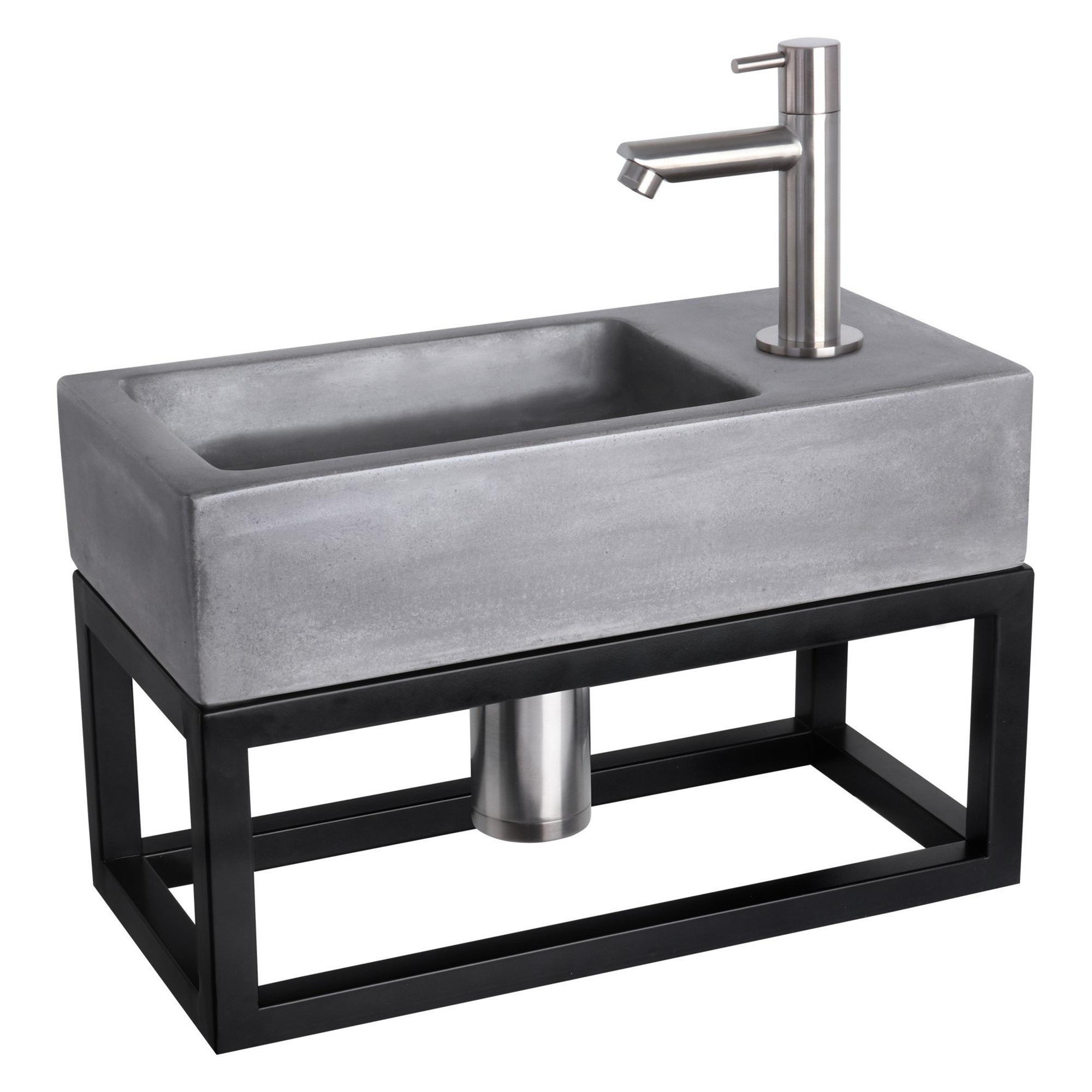 Differnz Ravo fonteinset - 38.5x18.5x25cm - Rechthoek - 1 kraangat - Recht matte chromen kraan - met zwart frame - beton donkergrijs