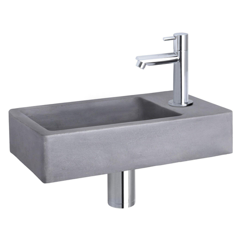 Differnz Force fonteinset - 40x22x8cm - Rechthoek - 1 kraangat - Recht chromen kraan - Beton Grijs