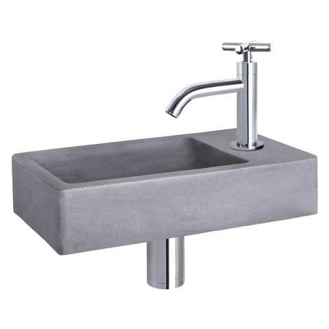 Differnz Force fonteinset - 40x22x8cm - Rechthoek - 1 kraangat - Gebogen chromen kraan - kruisgreep - Beton Grijs