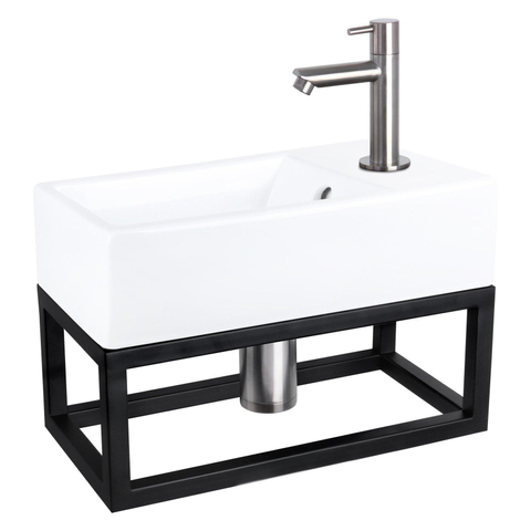 Differnz Force fonteinset - 40x22x11.5cm - Rechthoek - 1 kraangat - Recht matte chromen kraan - met zwart frame - Keramiek Wit