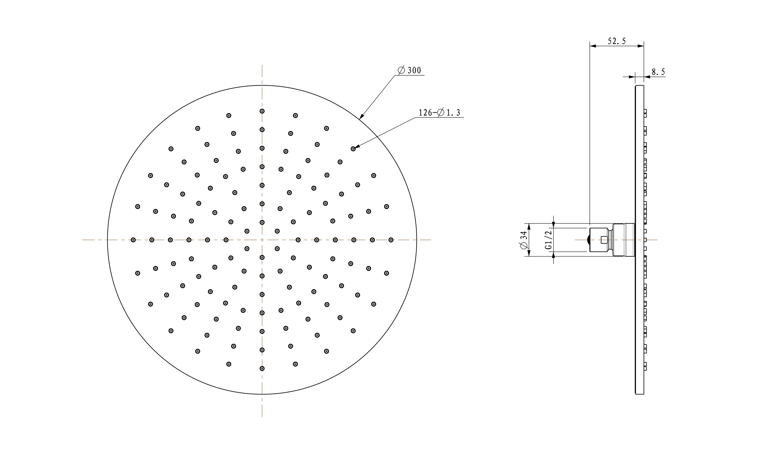 Deze hoofddouche heeft een messing kleur en een antikalksysteem. Daarnaast bevat deze hoofddouche een kogelgewricht, waardoor de douchekop draaibaar is. Hierdoor kun je zelf gemakkelijk bepalen waar de douchestraal naar toe moet richten. Deze douchekop kun je bevestigen aan een douchearm uit het Wiesbaden Sanitair assortiment.