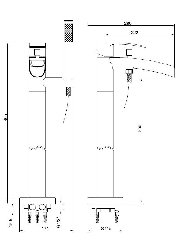Lima vrijstaande badmengkraan waterval compleet chroom
