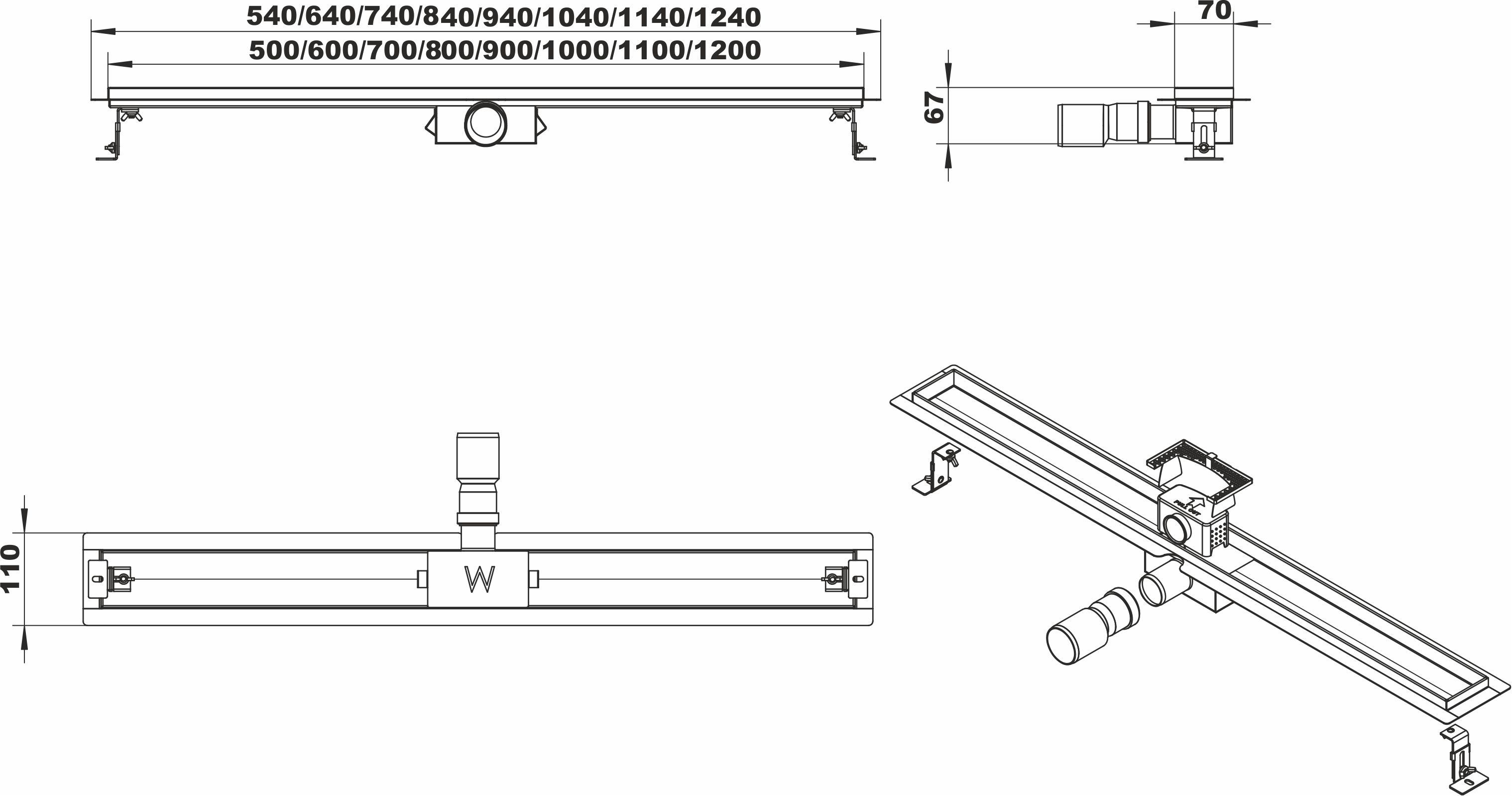 Wiesbaden 3e generatie douchegoot met flens exclusief rooster 70 x 7 cm RVS