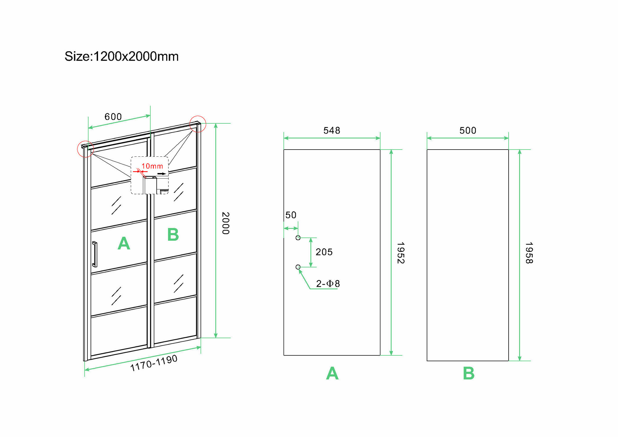Wiesbaden Horizon nisdeur met vast deel en raster 1200 x 2000 x 8mm nano helder glas/mat zwart