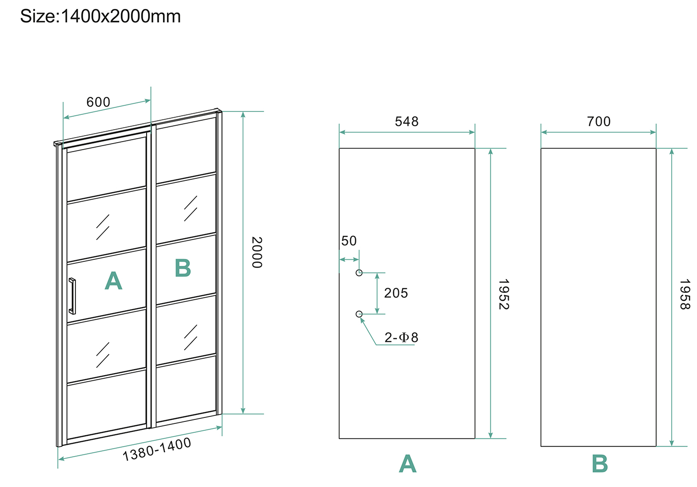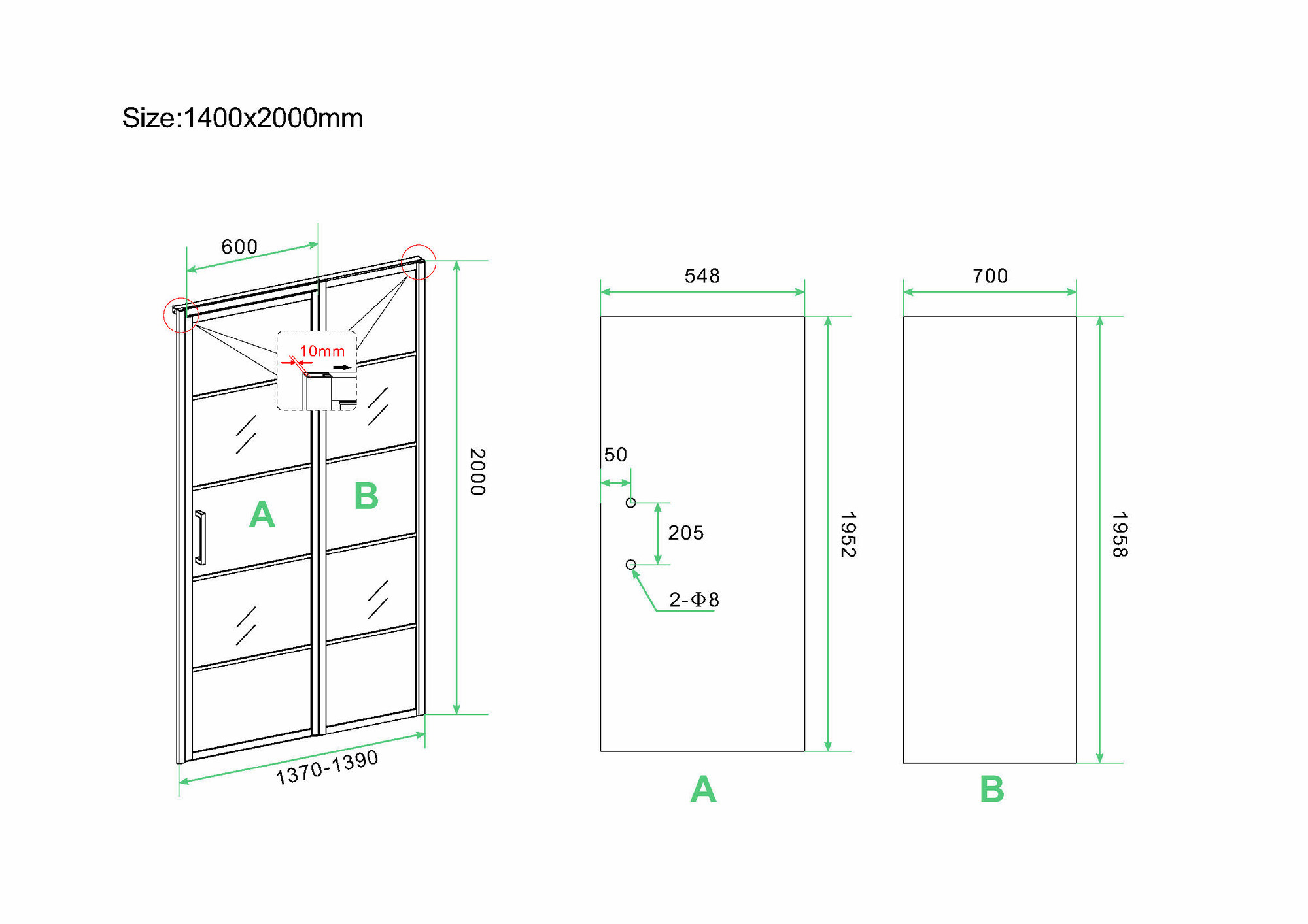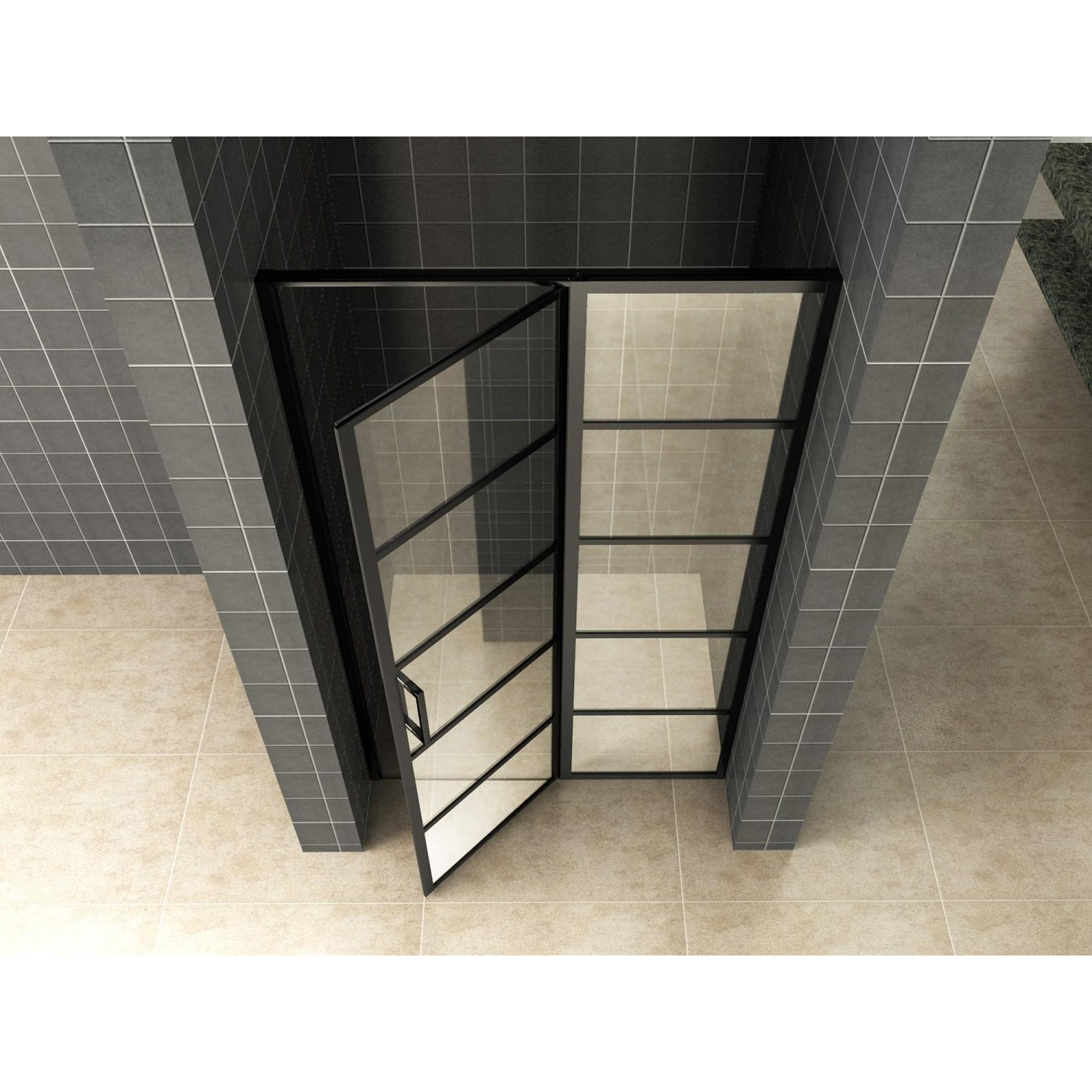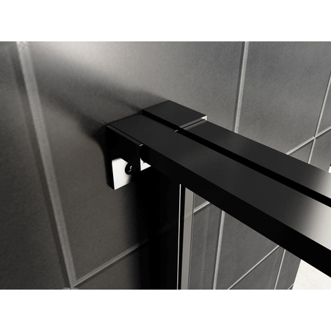 Wiesbaden Horizon nisdeur met vast deel en raster 1400 x 2000 x 8mm nano helder glas/mat zwart
