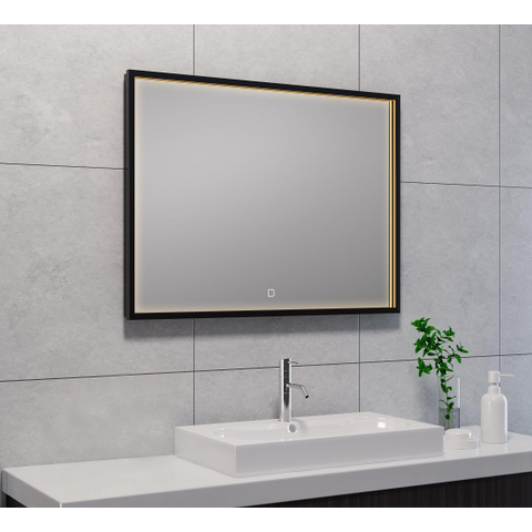 Wiesbaden Avi spiegel rechthoek met LED, dimbaar en spiegelverwarming 80 x 60 cm mat zwart