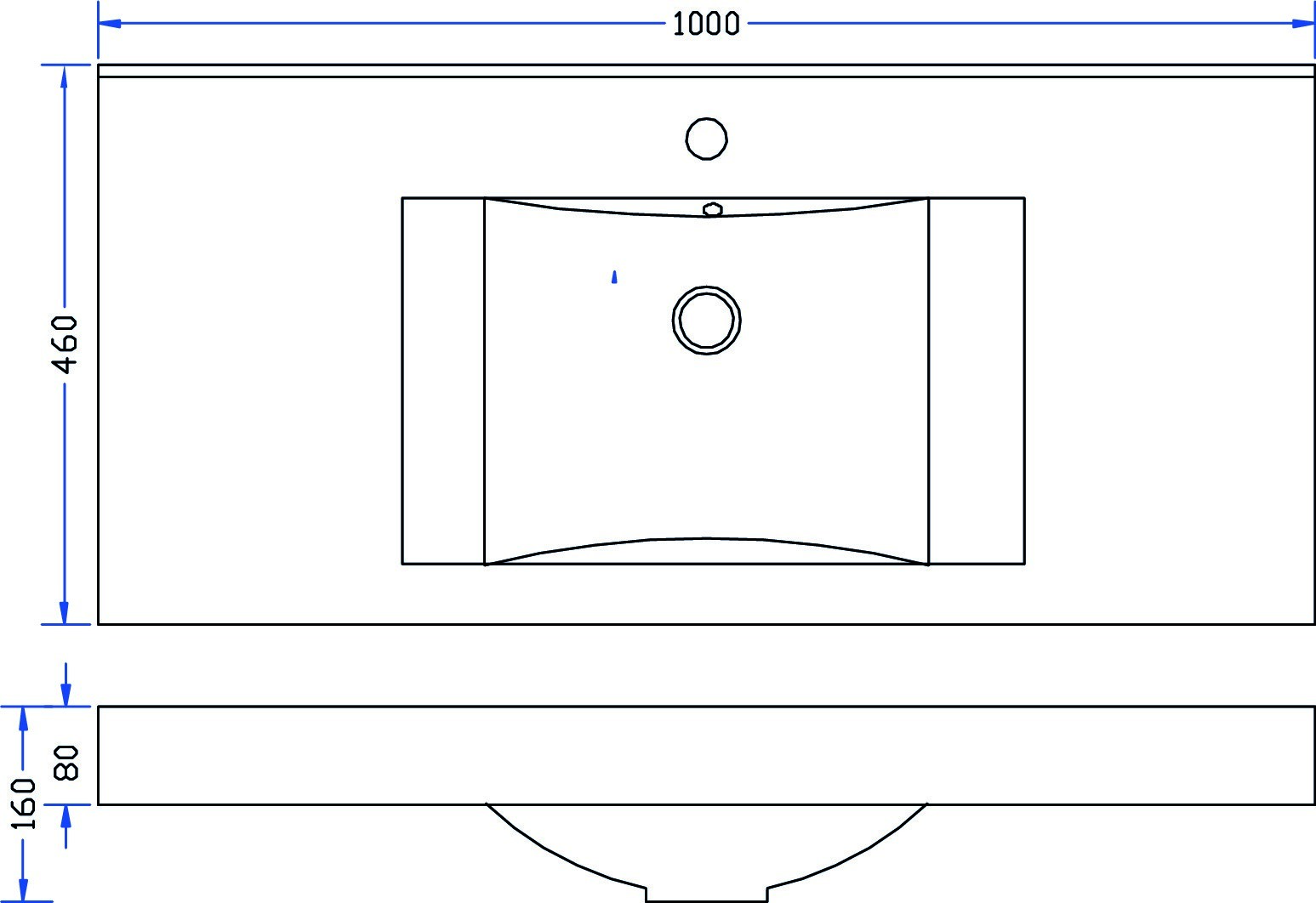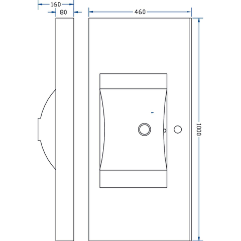 Xellanz Wiesbaden Tigris wastafel enkel met 1 kraangat 100x46x8 cm kunstmarmer glans wit