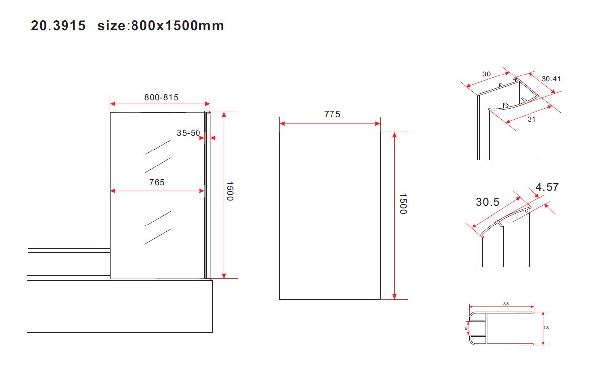 Wiesbaden Tela badwand vast 800 x 1500 x 6 mm nano helder glas/chroom