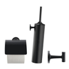 De Duravit Starck T Toiletset straalt luxe uit in elke badkamer. Het diepe zwarte design geeft een gevoel van exclusiviteit en klasse. De toiletrolhouder, borstelgarnituur en handdoekhaak zijn vervaardigd met oog voor detail en kwaliteit, waardoor ze een luxueuze uitstraling hebben die de ruimte verrijkt.