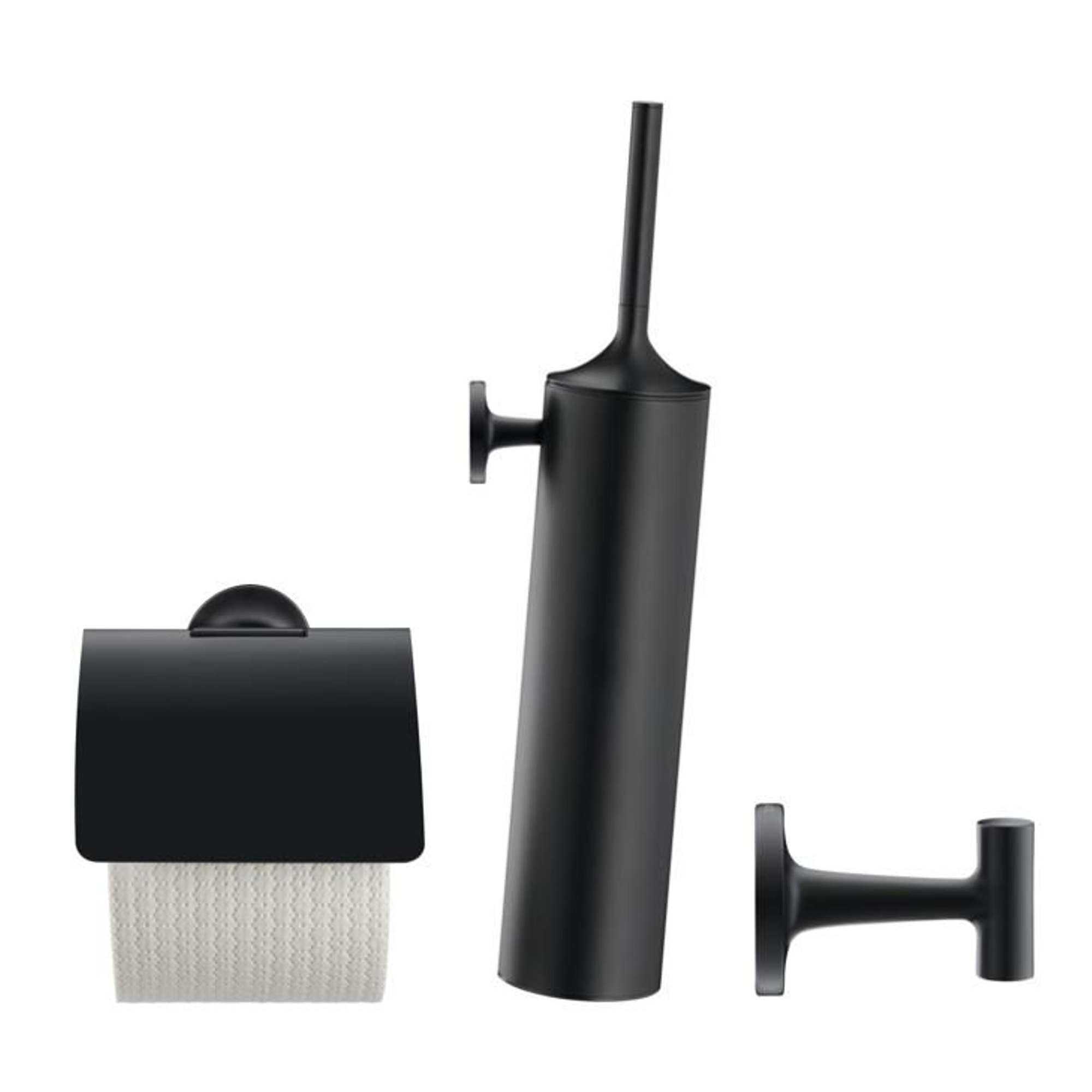 Duravit Starck T Toiletset - toiletrolhouder - borstelgarnituur - handoekhaak - zwart