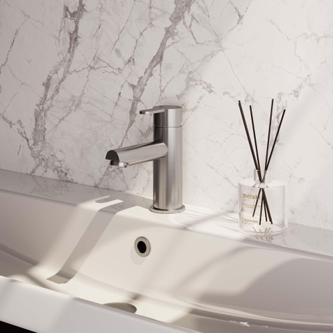 De Brauer Brushed - Edition Wastafelmengkraan opbouw - laag - model d - PVD - geborsteld RVS straalt een onmiskenbare elegantie uit die jouw badkamer transformeert tot een luxe oase. De combinatie van het lage model en de geborsteld roestvrijstalen afwerking geeft deze kraan een verfijnde uitstraling die klasse en stijl uitstraalt. Met zijn elegante design en hoogwaardige afwerking is deze kraan een perfecte keuze voor wie op zoek is naar een vleugje luxe in de badkamer.