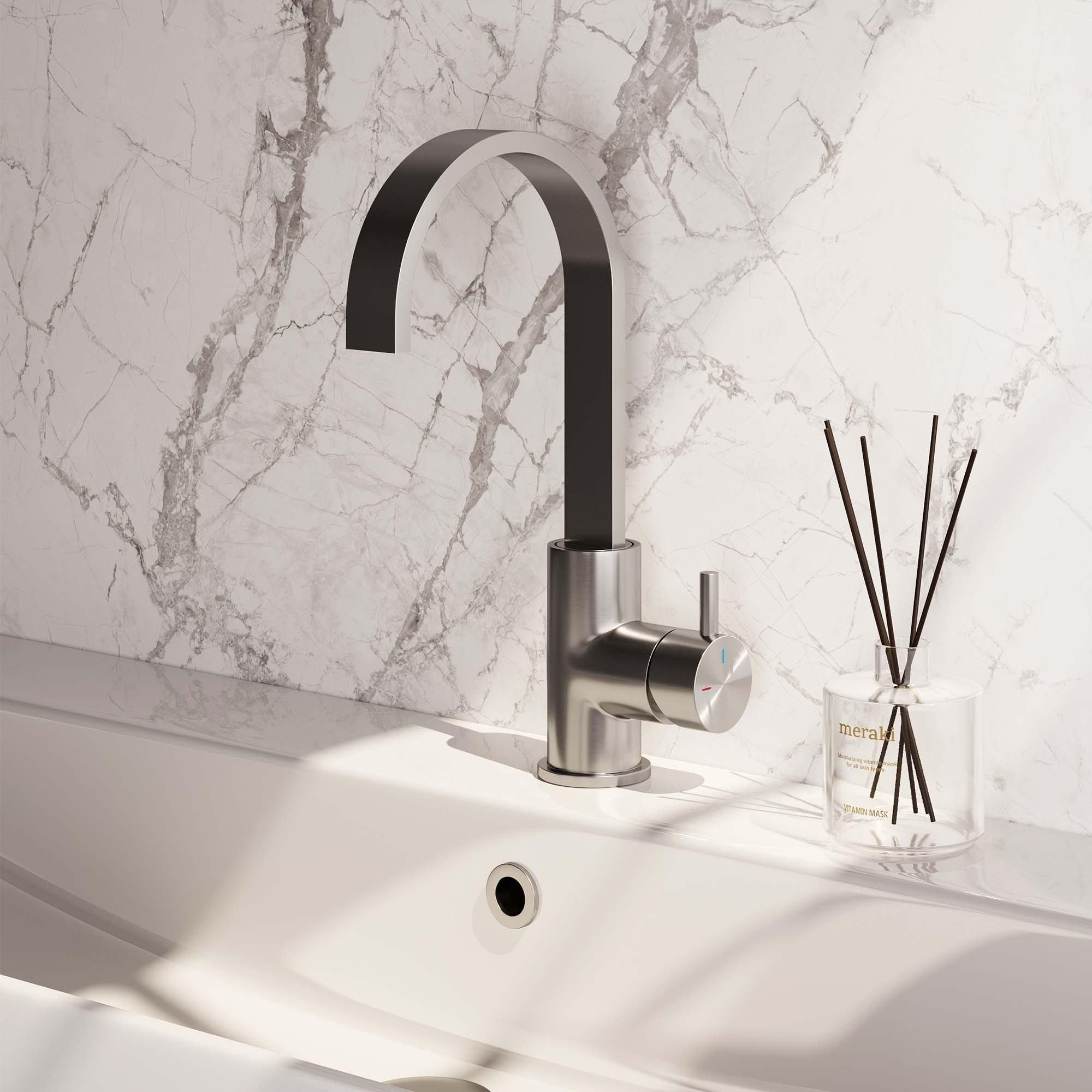 Naast zijn esthetische aantrekkingskracht is de Brauer Brushed - Edition Wastafelmengkraan opbouw ook uiterst functioneel. De draaibare en platte uitloop bieden flexibiliteit en gemak bij dagelijks gebruik, terwijl de hoogte van de kraan zorgt voor voldoende ruimte om comfortabel te kunnen handen wassen. Deze kraan combineert stijl en functionaliteit op een perfecte manier, waardoor het een essentieel element is in elke moderne badkamer.