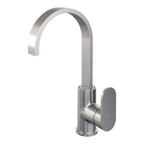 Brauer Brushed - Edition Wastafelmengkraan opbouw - hoog - draaibaar - platte uitloop - model C - PVD - geborsteld RVS