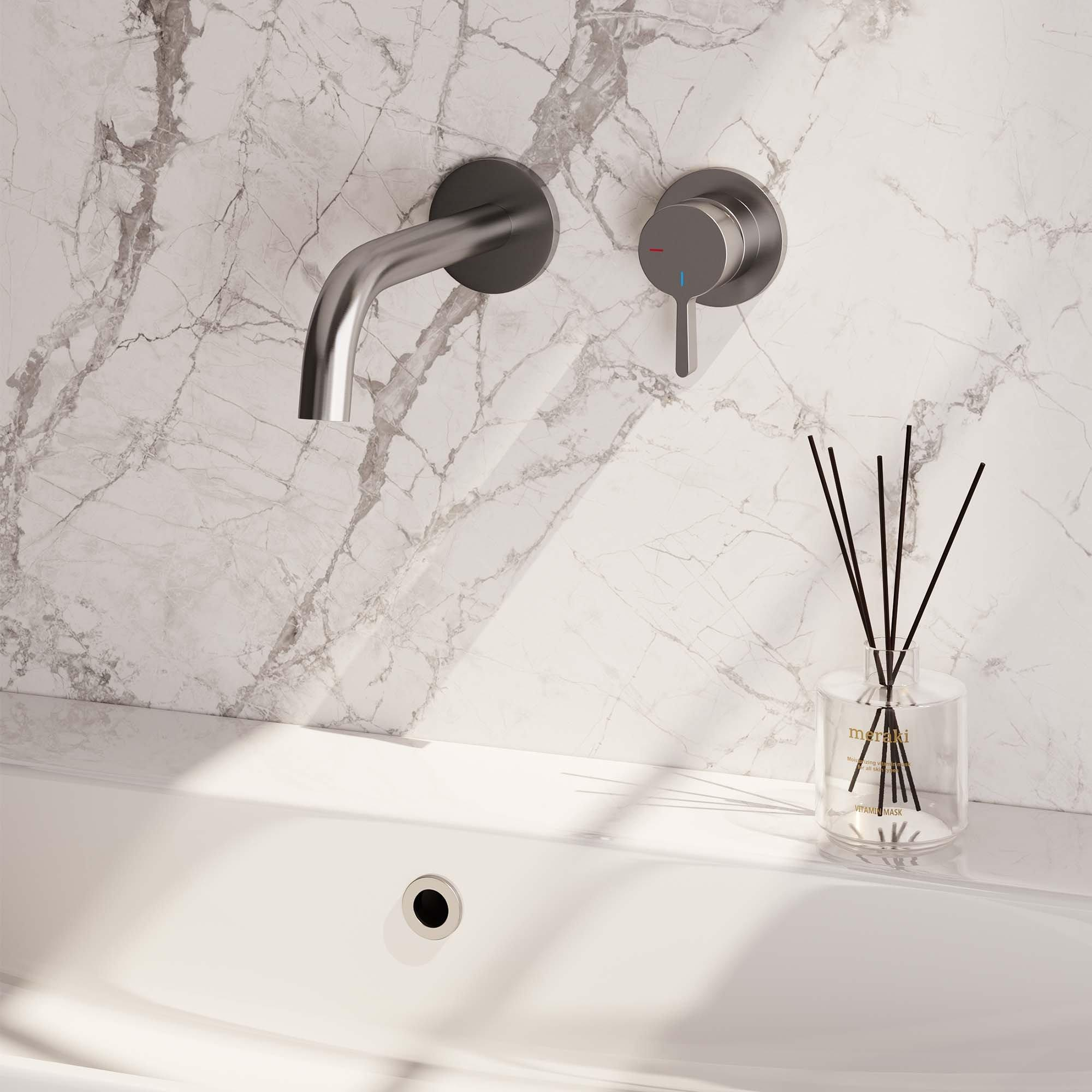 De Brauer Brushed Edition Wastafelmengkraan inbouw is een prachtig ontworpen kraan die elegantie en functionaliteit combineert. Met een gebogen uitloop aan de linkerkant en een hendel van gemiddelde dikte, straalt dit model klasse uit in elke badkamer. Het gebruik van PVD-technologie zorgt voor een duurzame geborsteld RVS afwerking die lang meegaat en gemakkelijk te onderhouden is. Deze inbouwkraan voegt een vleugje luxe toe aan jouw wastafel en maakt van je dagelijkse routine een plezierige ervaring.