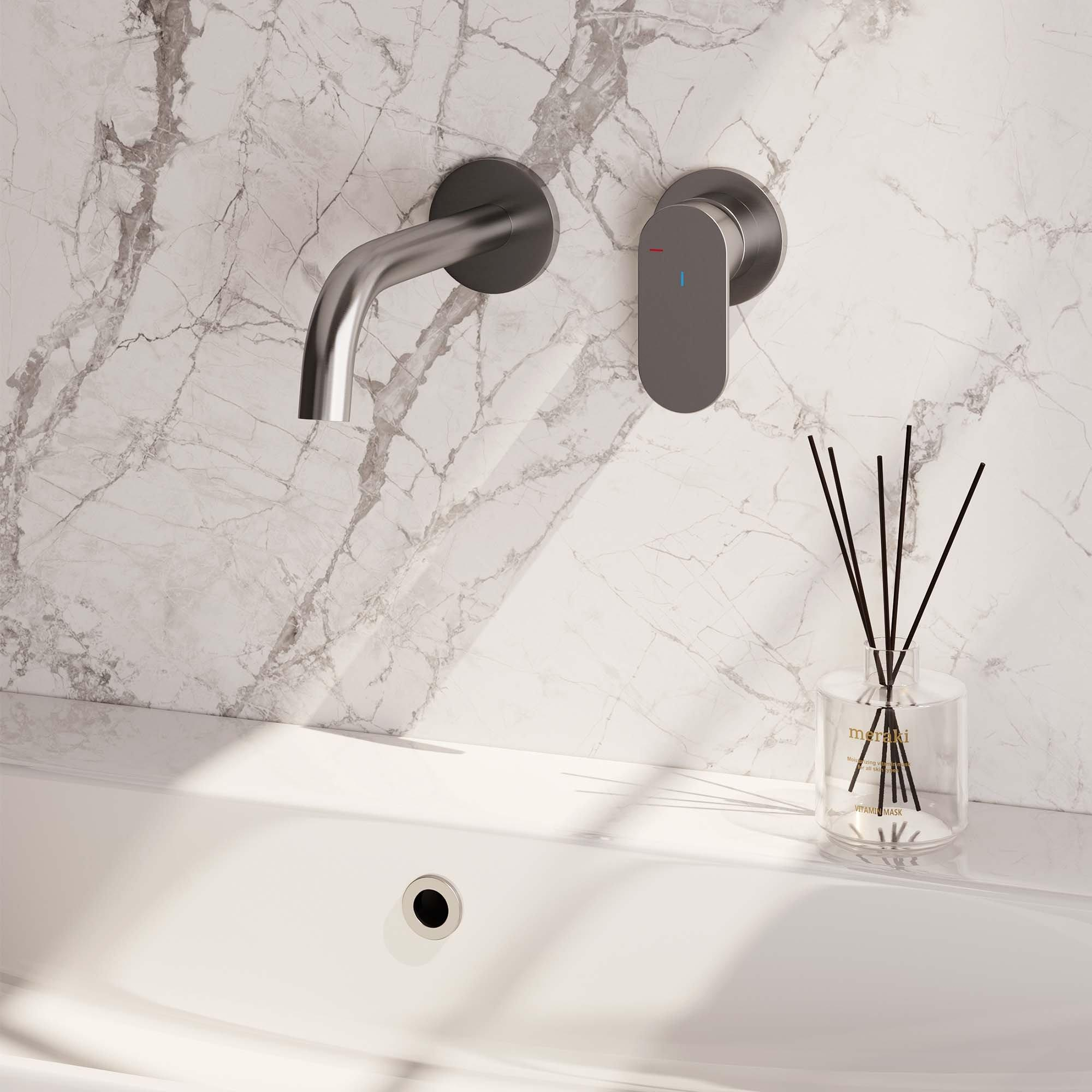 De Brauer Brushed Edition Wastafelmengkraan inbouw is een prachtig vormgegeven kraan die een vleugje elegantie toevoegt aan elke badkamer. Met zijn gebogen uitloop aan de linkerkant en brede platte hendel, straalt dit model C 1 kraan luxe en stijl uit. Gemaakt van duurzaam PVD-geborsteld roestvrij staal, is deze kraan niet alleen een visueel hoogtepunt, maar ook van hoge kwaliteit en langdurige prestaties.