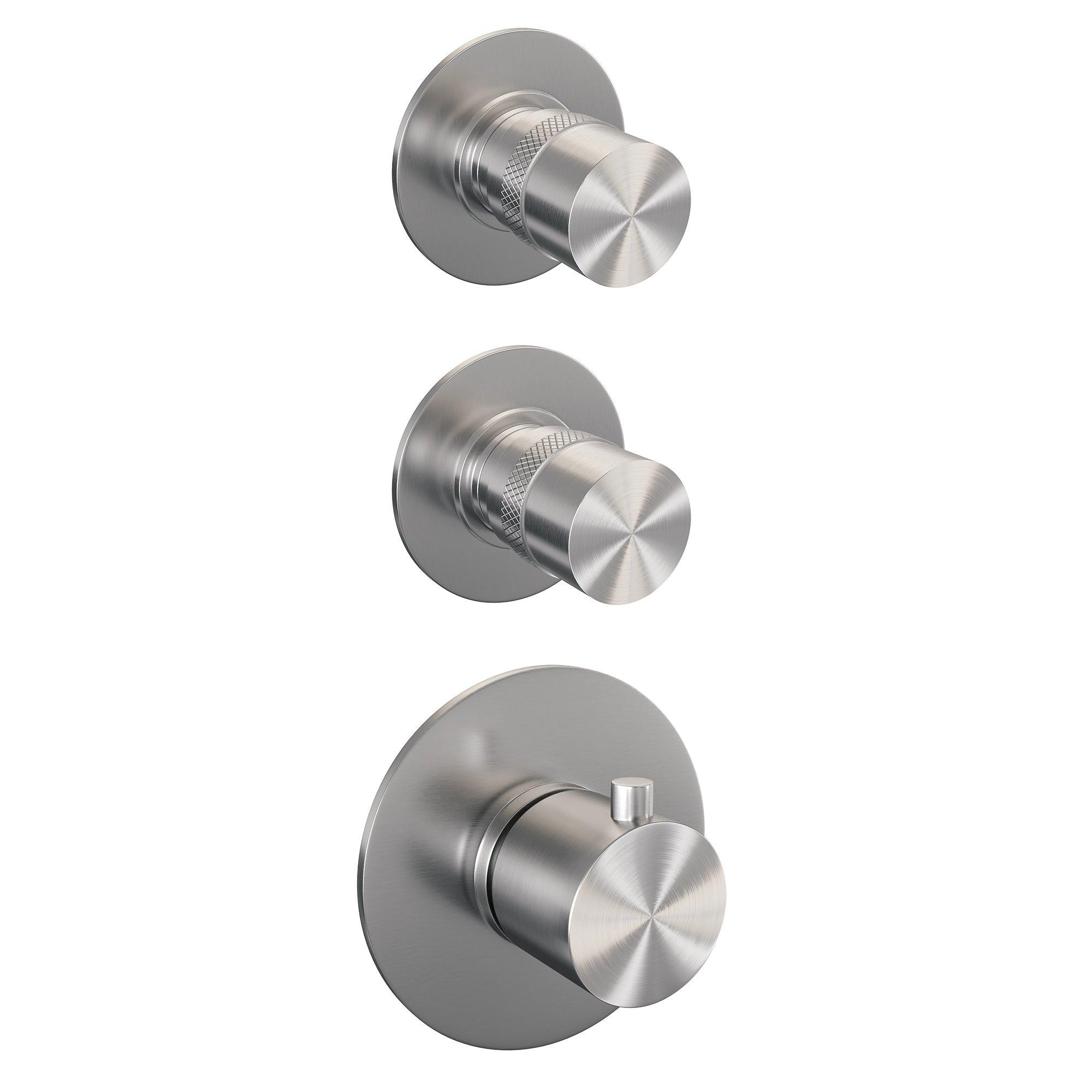 Brauer Brushed Edition Regendoucheset inbouw - hoofddouche 20cm - 3 gladde knoppen - rechte wandarm - handdouche rond 3 standen - PVD - geborsteld RVS
