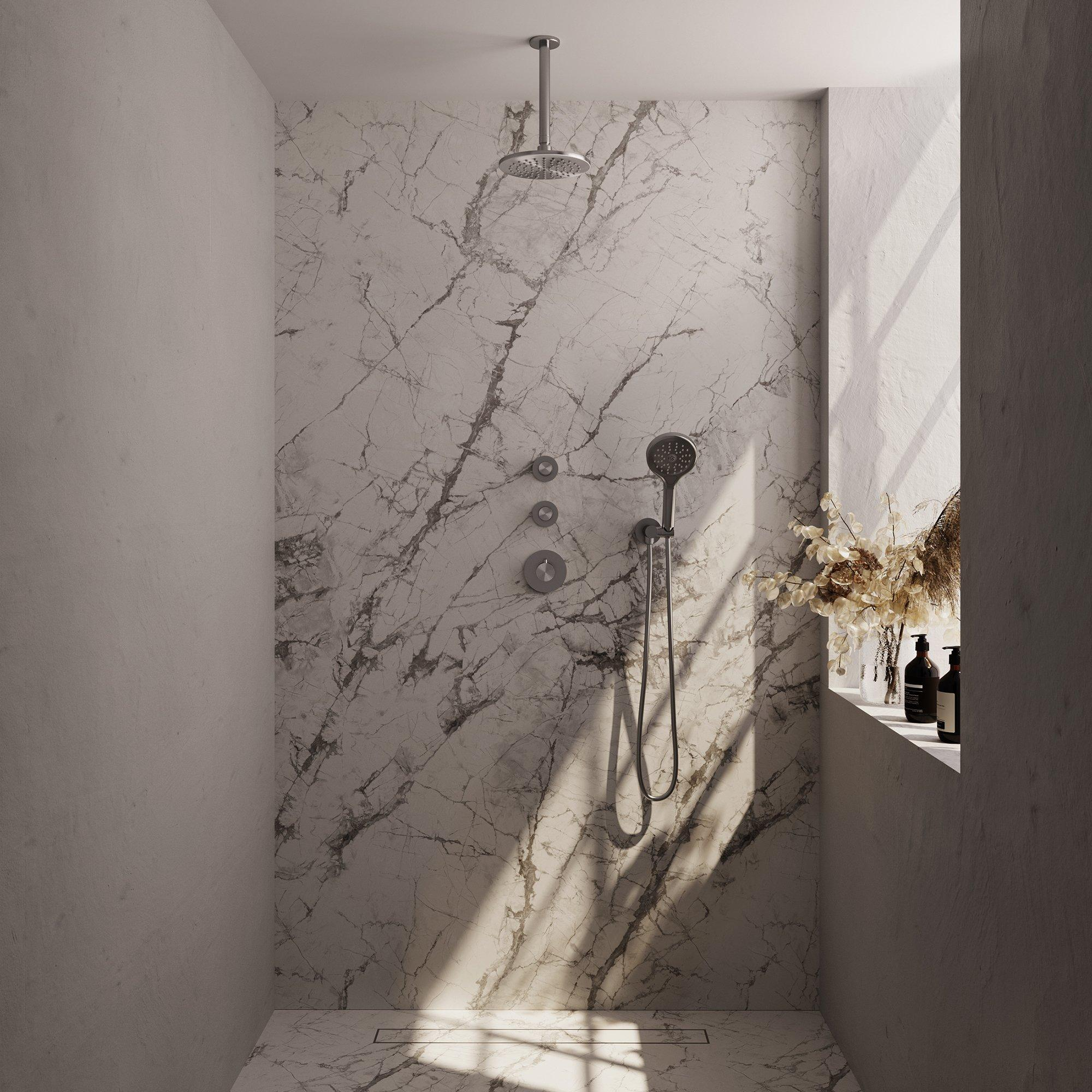 De Brauer Brushed Edition Regendoucheset biedt ultiem comfort tijdens elke douchebeurt. De soepele bedieningselementen zorgen voor een moeiteloze en plezierige ervaring, terwijl de regendouche en handdouche je omhullen in een verfrissende waterstroom. De 3 standen van de handdouche stellen je in staat om de waterdruk en straal aan te passen naar jouw voorkeur, waardoor je kunt genieten van een gepersonaliseerde douche-ervaring. Met de Brauer Brushed Edition Regendoucheset wordt douchen een moment van ultieme ontspanning en comfort.