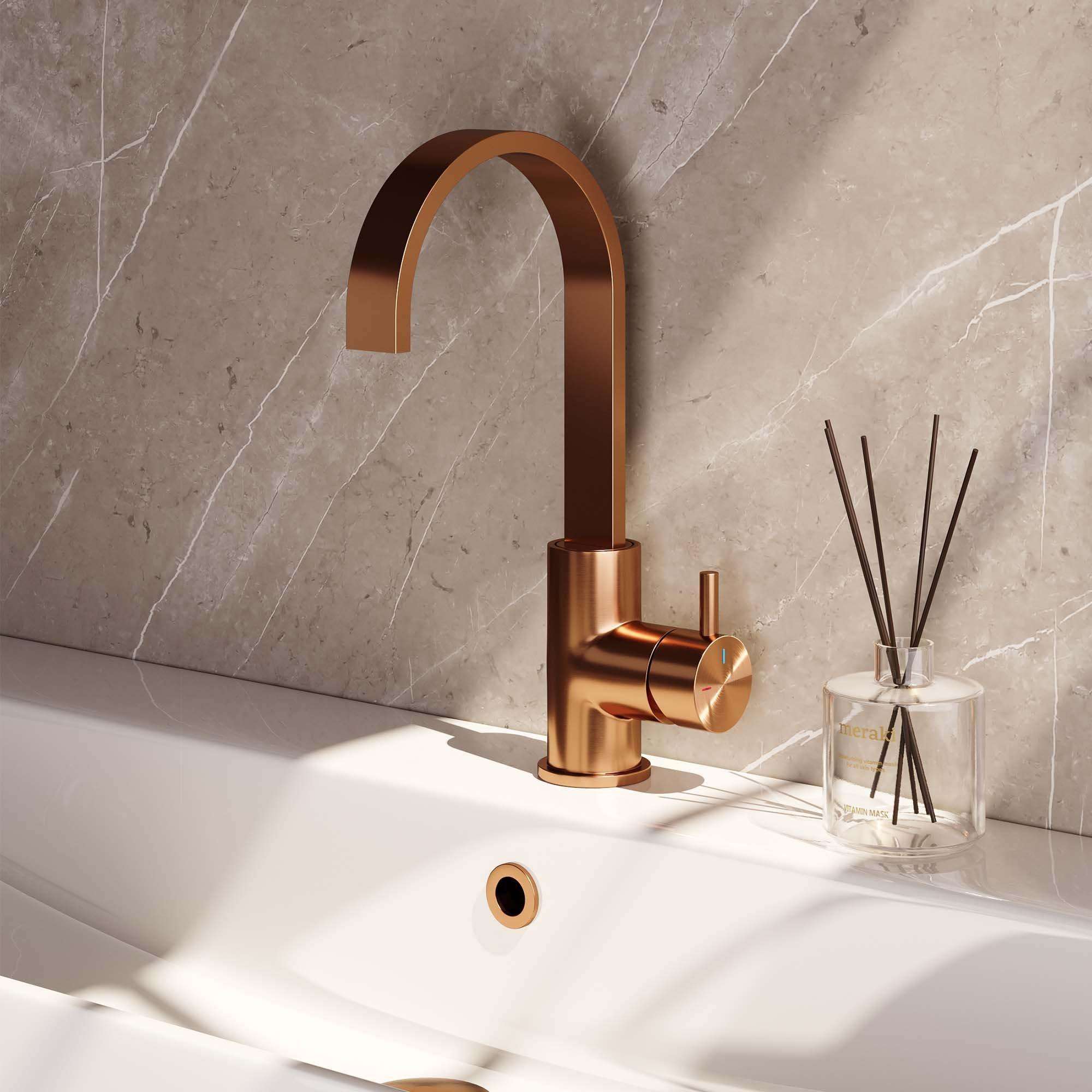 Brauer Copper Edition Wastafelmengkraan opbouw - hoog - draaibaar - platte uitloop - model b - PVD - geborsteld koper