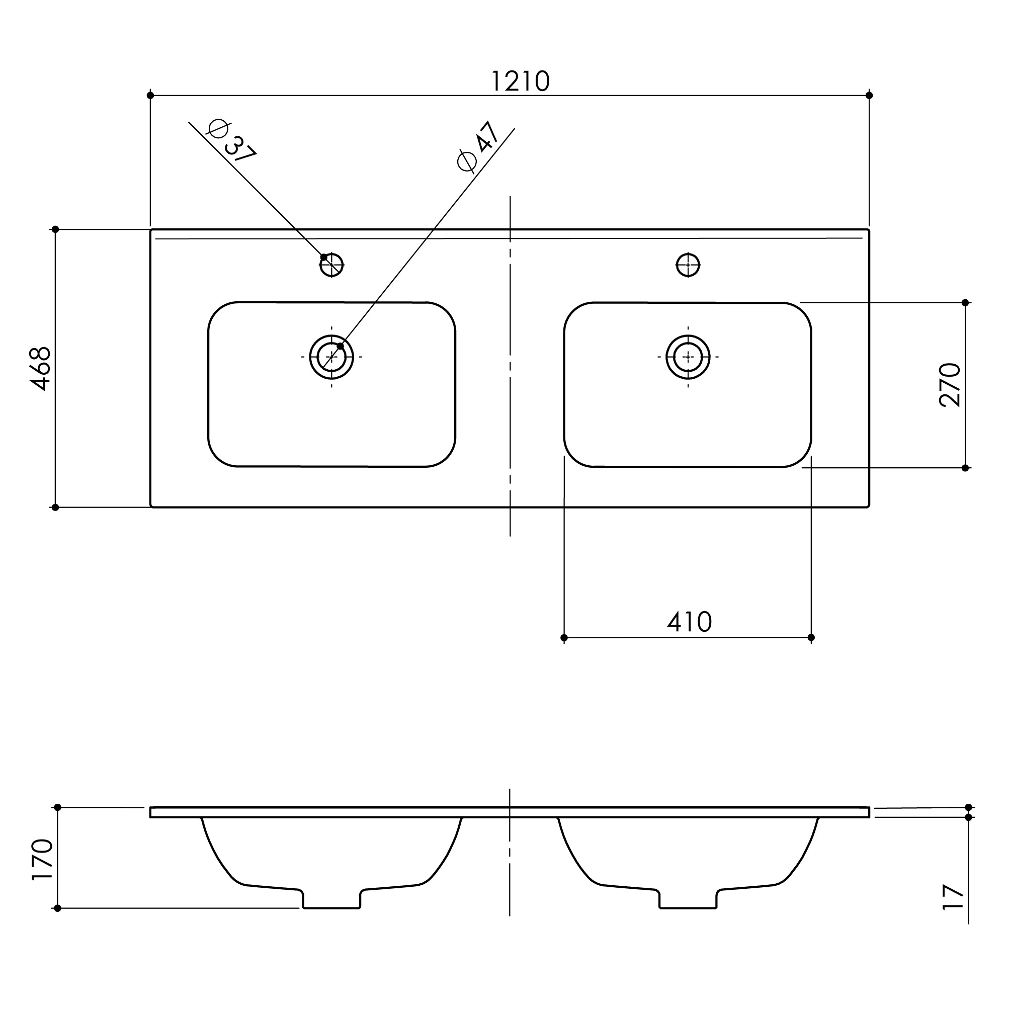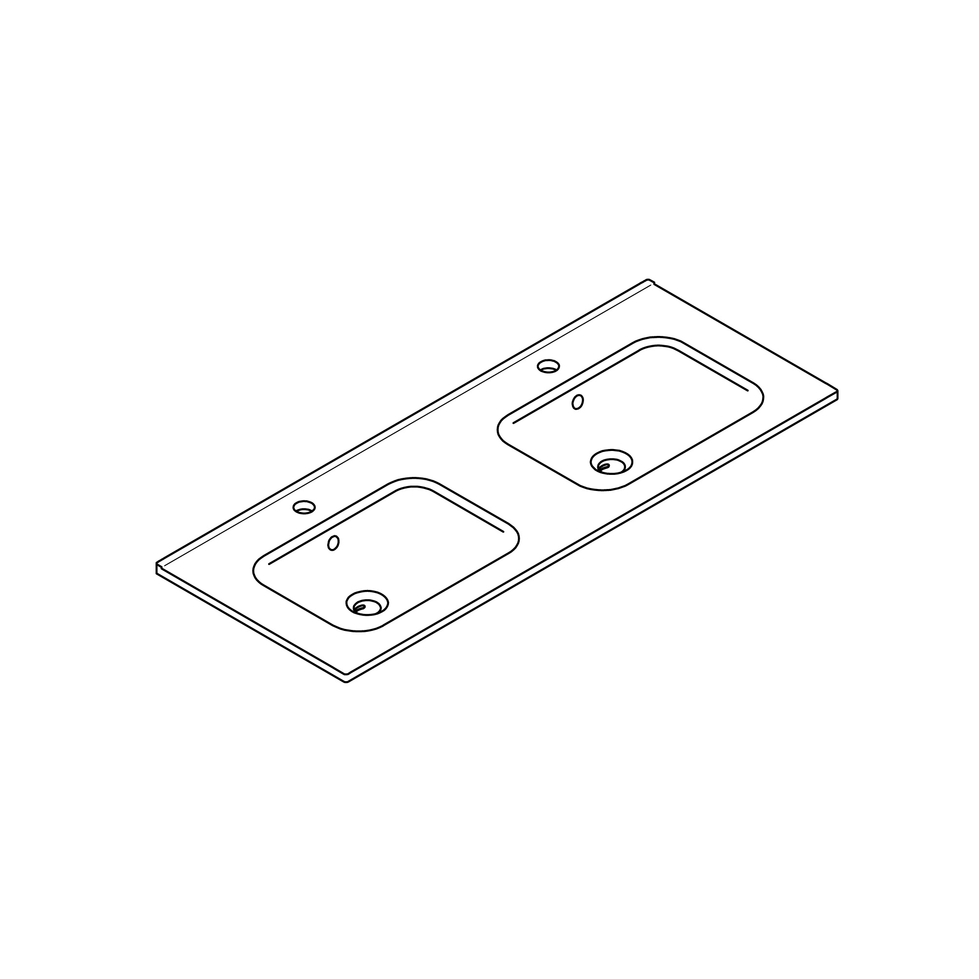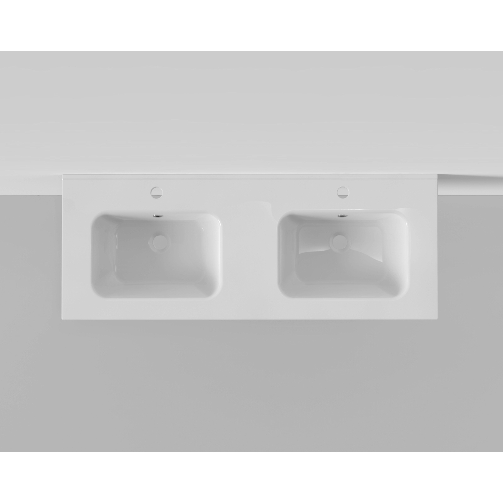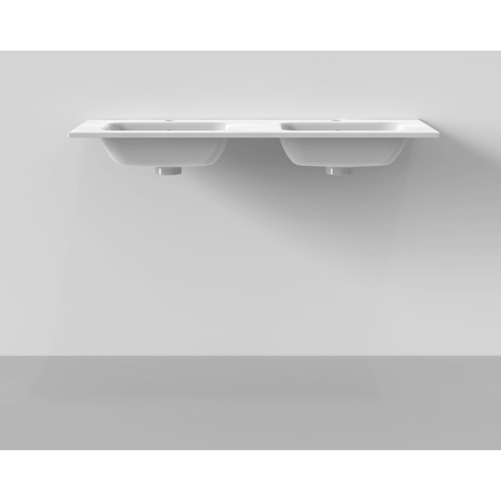 Arcqua Pakaru wastafel 121x46cm met overloopgat 2 kraangaten 2 wasbakken keramiek glans wit