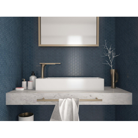 De Mosaic Factory Valencia mozaïektegel straalt een onmiskenbare stijl uit. Met zijn zeshoekige vorm en gerecyclede glasmateriaal voegt deze tegel een vleugje luxe toe aan elke ruimte. De matte blauwe afwerking zorgt voor een eigentijdse uitstraling die perfect past bij moderne interieurs. Of je nu een minimalistische of een eclectische stijl hebt, deze tegel past moeiteloos in verschillende decors en creëert een unieke en verfijnde sfeer.